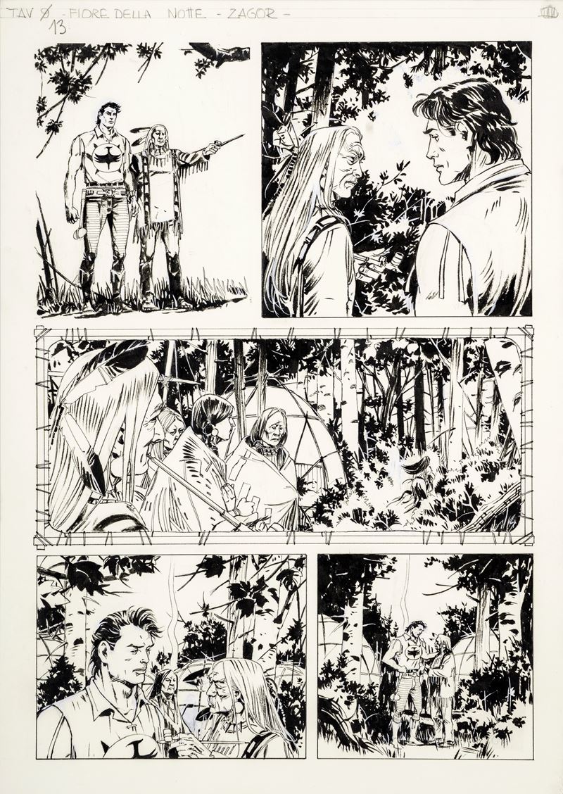Tavola originale realizzata dalla Airaghi per "Fiore della Notte", edita su Zagor Darkwood Novels n. 6 a pag. 13 dalla Bonelli nel 2020.