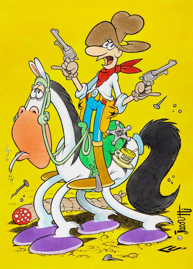Illustrazione originale realizzata da Salvagno come omaggio a Cocco Bill e al suo maestro Benito Jacovitti. Firmata al fronte e al retro.