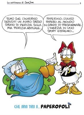 Illustrazione originale realizzata dalla Ziche per la serie "Che aria tira a...Paperopoli", edita su Topolino n. 3348 a pag. 3 nel Gennaio 2020.