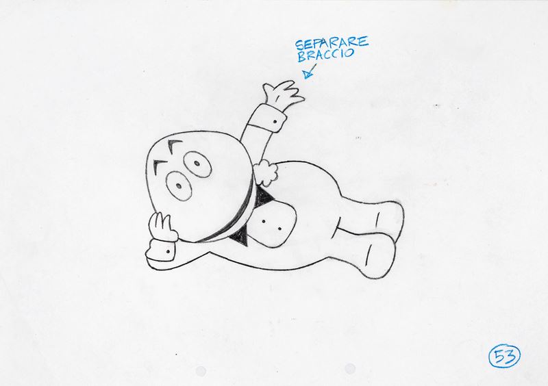 Disegno di animazione realizzato dallo Studio Tonin (guidato da Piero Tonin) per una sigla animata di "Striscia la notizia" durante gli anni '90. Lievi pieghe ai margini.