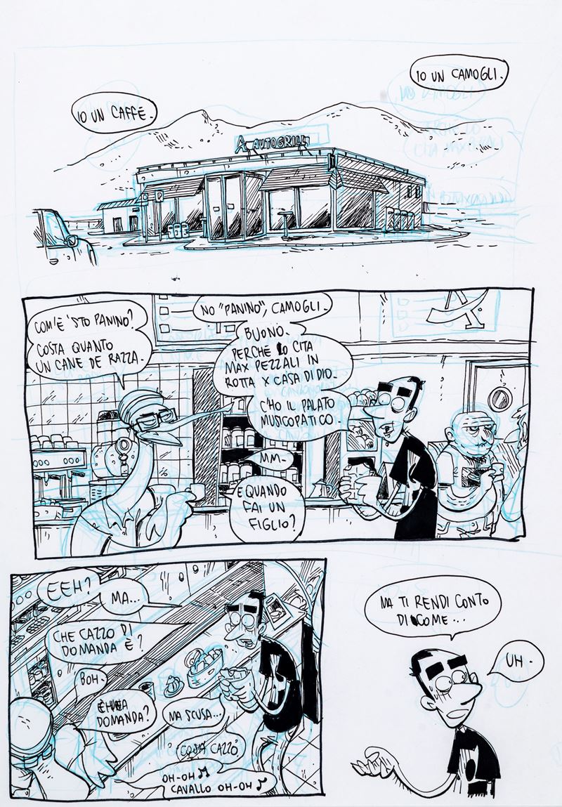 Tavola originale realizzata da Zerocalcare per la graphic novel "Quando muori resta a me", edita a pag. 50 dalla BAO Publishing nel 2024. L'opera ha vinto il premio Miglior Fumetto al COMICON 2025, per la sua profondità narrativa, l’impegno sociale e lo stile inconfondibile che caratterizza tutte le opere di Zerocalcare, da anni figura di riferimento nel panorama del fumetto italiano contemporaneo. Lievi pieghe. Di grande rarità.