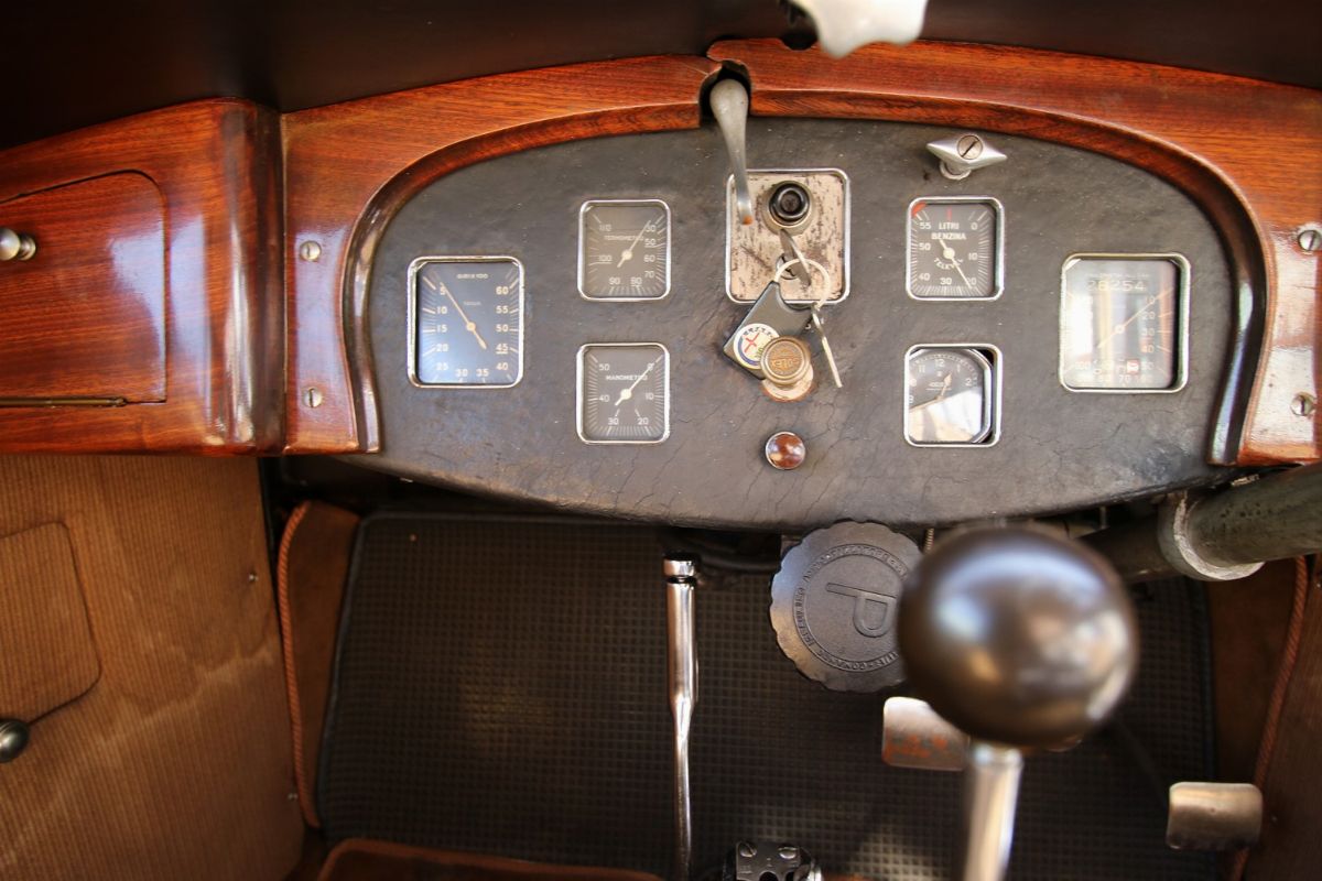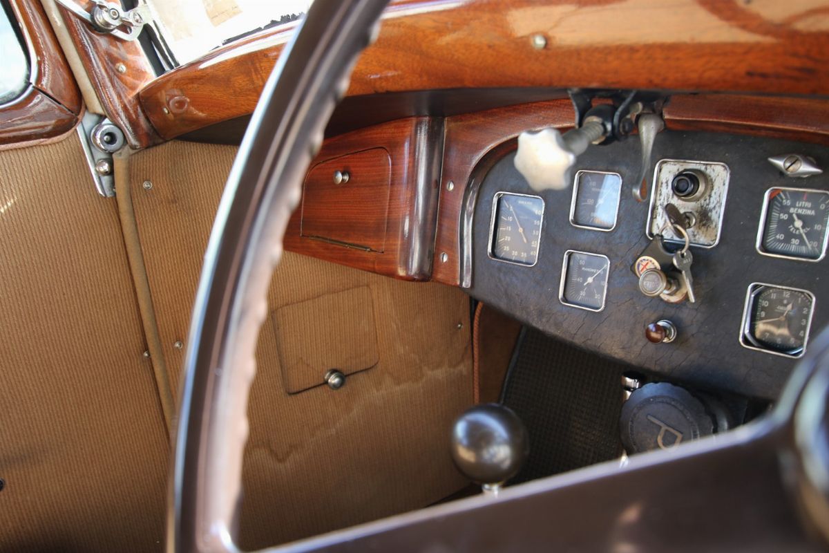 The 1933 Alfa Romeo 6C 1900 Gran Turismo, has the chassis no. 121315288. As the chassis of the 6C model are numbered from 121315101 to 121315300, the proposed car should be one of the last ones built. With a low and sleek profile and with its four doors, the Gran Turismo anticipates by far the modern sports sedans. It is believed that only two specimens still exist, the other one being on show at the Museo Storico Alfa Romeo. The car was rediscovered in Rome and became part of the great collection of Franco Contigliozzi, which also included a very rare one Lancia Astura Pinin Farina “Bocca”. The 6C 1900 was restored at the end of the 60s by the prestigious Boano’s body shop in Rome. Following the death of Contigliozzi, the car was acquired in 1969 by another important collector in Milan and became part of the Artom collection. The car lost, on this occasion, the Rome 38728 plate and was registered with a new plate MIG50923, that it still has today. In 1981, the car was acquired by another renowned collector. The 6C 1900, chassis no. 121315288, is part of a selected group of cars from his collection. The car was supposedly at a concourse d’elegance in the 70s. However, it was rarely used and mostly just kept and exhibited in the collections of which it was part. The frame no. 121315288 is today in an excellent state of preservation and always functioning, except during the years of restoration. Special note: the interiors have been restored with a luckily found precious piece of original fabric preservedin an old spare parts warehouse in Rome. The car, which has the correct Pirelli Stella Bianca 5.50 x 18 tires, has the peculiarity of the four "suicide" doors and is coated with a rich reddish chestnut colour and its pinstriping, grid, and laced wheels were painted in red. The car is matching numbers.