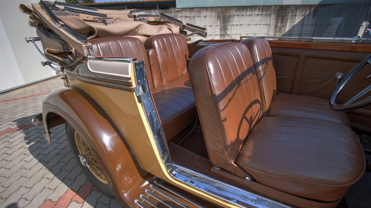 The 1934 Alfa Romeo 6C 2300, chassis no. 700212 is a Gran Turismo Cabriolet Royal by Carrozzeria Castagna Milano and is from the first series of 6C 2300, retrospectively called 6C 2300 A. A passionate collector of vintage cars located the car in Argentina at the end of the 70s, and then imported it to Italy in 1980. The car was most likely bought initially by an Italo-Argentine and had an Argentine plate BSA510200 (probably from the province of Buenos Aires). The 6C 2300 GT, chassis no. 700212, is the only known "Cabriolet Royal Castagna" existing today. The model was presented at the 1934 Salone di Milano at the Castagna stand. From the black and white photos of the era, we can see a pale coloured car that could be the car at auction; in fact, it is not clear how many specimens have been built, maybe just one: no other specimens have ever been seen. The advertising pages of the Castagna bodywork of the time, on the other hand, depict exactly this car.The collector, who found the car in the 70s, later sold it to another renown collector. The 6C 2300 GT, chassis no. 700212, is part of a selected group of cars from his collection. The body built by Ercole Castagna is in the shape of an elegant convertible, with exceptional finishing and detailing. It has tilting glass both on the front and the rear and has an elegant and proportionate designed soft top, with an original but complex system of frame and joints for opening and closing. With the “6C 2300s A,” Ala Romeo became to pay great attention to improved aerodynamics in the bodywork. The chassis no. 700212 is equipped with an additional kit with two SOLEX double-barrel carburettors and dedicated manifold, instead of the single standard double-barrel carburettor. The dashboard features an indicator of the speed limits of all the gears and a watch smaller than usual. Completely original, the car was patiently restored in the mechanics and the bodywork in the early 1980s. Today, despite the years of restoration, it is in good conditions and functions excellently. The chassis no. 700212 has participated, over the years in various events, many with the RIAR. To name some of them: the 14th Rally Alfa Romeo Città di Ferrara in 1989, the Alfa Romeo Trophaeum Club in 1990, the control con Mario Righini at the Panzano castle in 1992, the 50th AFRA anniversary in Settimo Milanese, in 1996, the event The RIAR in Poland in 2001 and the Coppa Milano-Sanremo in 2005. The most significant event was, perhaps, the Trofeo di affidabilità Alfa Romeo Milano-Capo Nord in 1989 (documented by the images from a video), brilliantly faced and overcome. The 6C 2300 GT, chassis no. 700212 was registered in Italy in 1991, with plates MI6U2724. It is ready for re-enacting competitions and the main concourse of elegance.