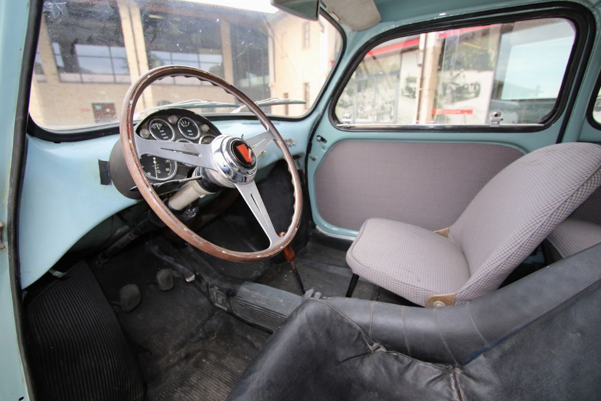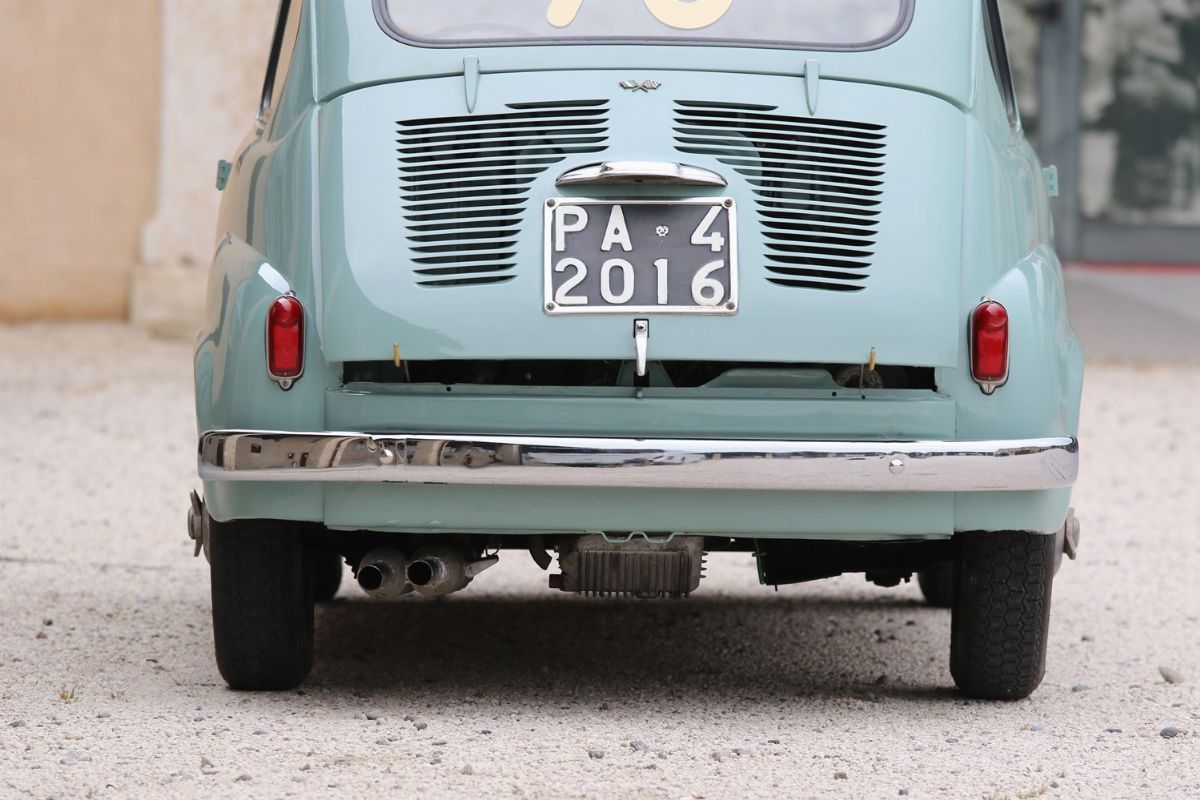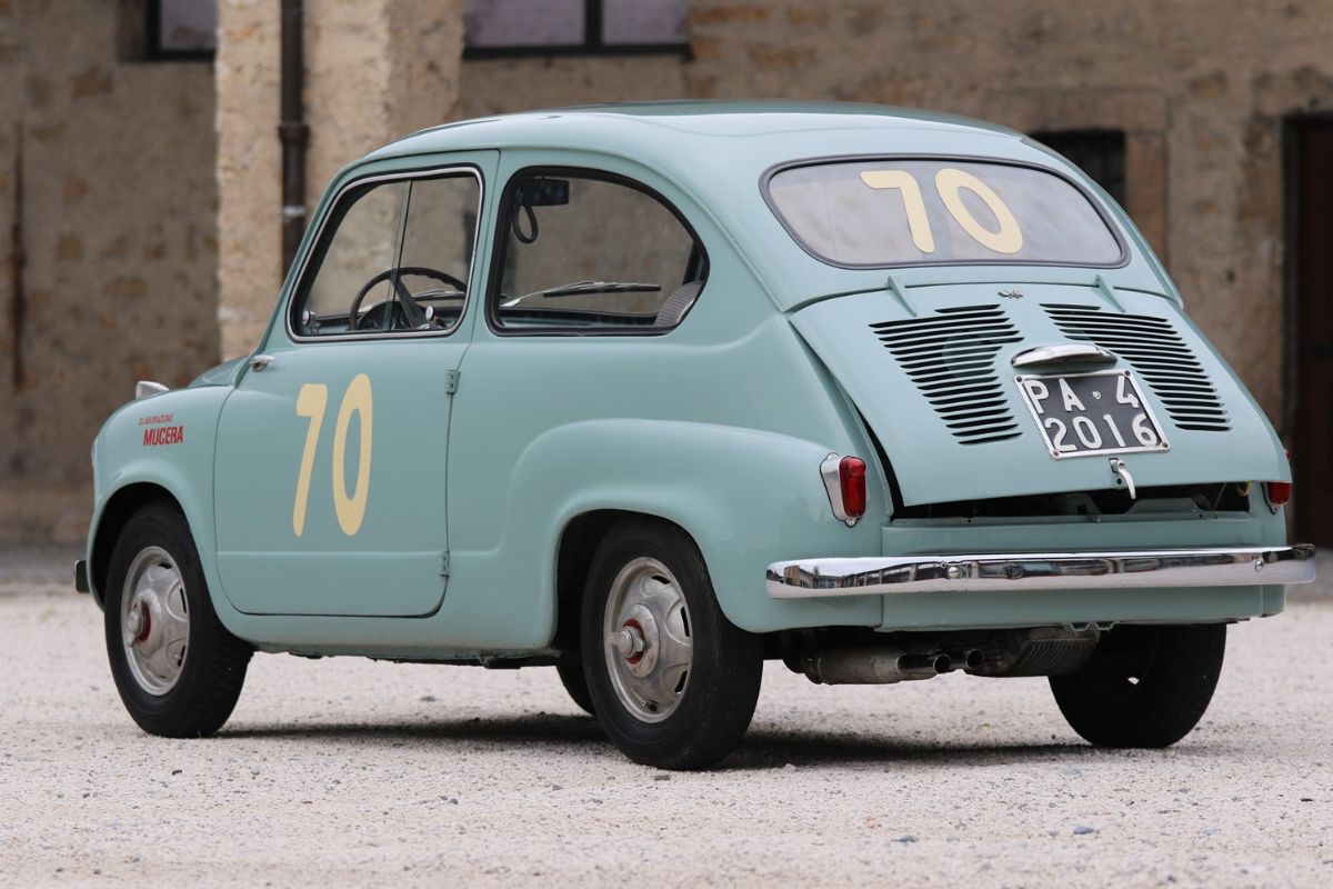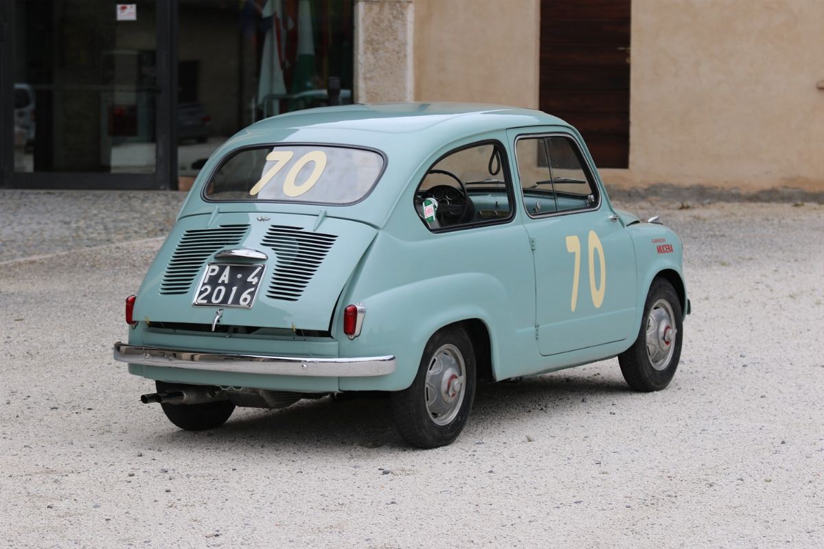 The Fiat 600, chassis no. 222606, was registered for the first time on October 1st, 1956 and its first owner was Salvatore Calascibetta, a well-known racing driver of the era, who used it with great success in numerous races. It is in an excellent state following a recent restoration that has included the maintenance of many original parts. The bodywork (which is in its characteristic “azzurro cenere” color), sliding windows and interiors are all very well-kept, the latter notable for its anatomical seat on the driver's side, typical of the period. A precious dashboard complete with additional instrumentation surrounds the NARDI sports steering wheel once again of the era. The car was originally set-up by the noted MUCERA workshop in Palermo, with the famous “cassetta di derivazione Abarth 750” (a box full of dedicated racing parts). In fact, still today this car is a "derivazione Abarth 750" featuring the typical finned cast-aluminium oil pan, a bigger carburettor and special exhaust manifold and muffler. The AMADORI magnesium rims with rectangular holes to improve cooling and the wheel cups with aesthetic hubcaps are extremely rare. So far, it is the only known surviving example of Fiat 600 with a similar racing history, in fact, "Toto '" Calascibetta drove this car in several races all over Italy planning its races according to a road route that would track the "postal" ferry from Sicily. Notable among these were the Targa Florio (Palermo 1957), Pontedecimo-Giovi (Genoa 1958), Sassi-Superga (Turin 1958), Coppa Nissena (Caltanissetta 1959) and Salita del Monte Erice (Trapani 1960). The equipment of this Fiat is completed by some further period accessories including a steering lock, enamelled brass friezes with Italian flag and checkered flag, additional central headlight and Fiat written in italics on the front grille typical of the first Fiat 600 Abarth.State of the ArtRecent restoration of bodywork, interiors and a complete overhaul of the mechanical parts.