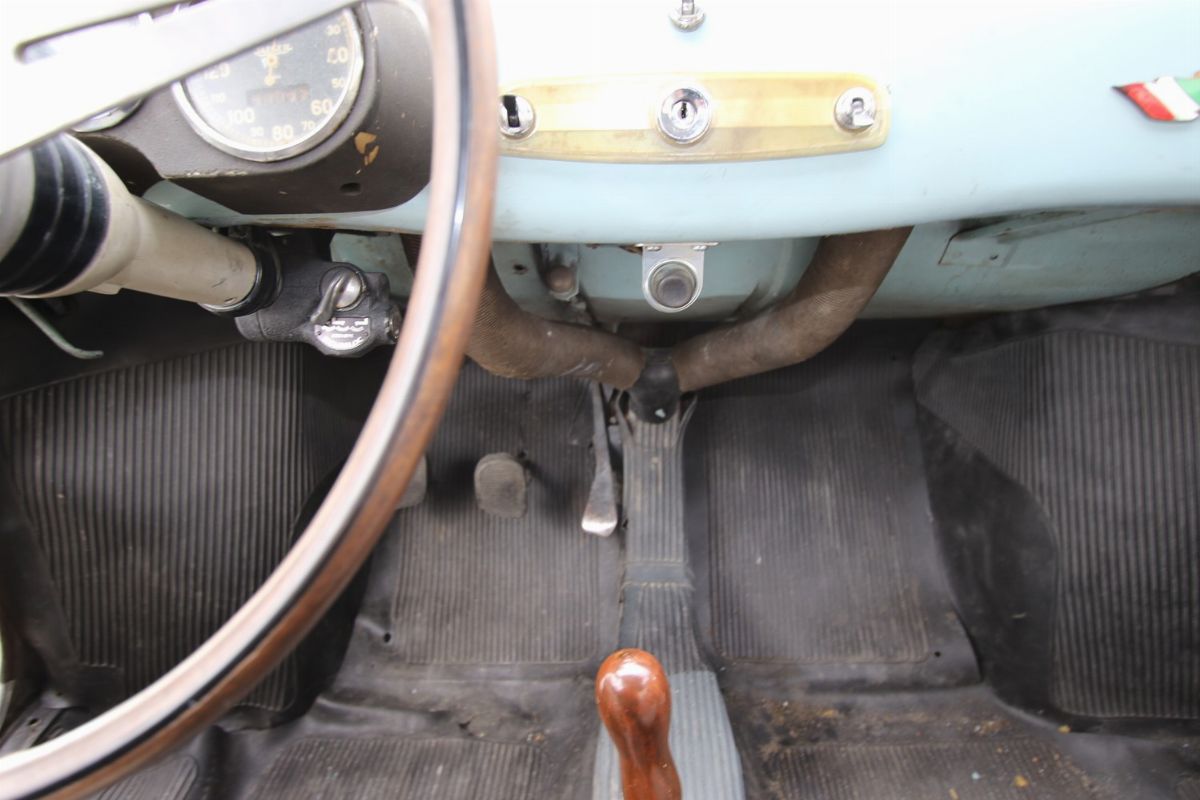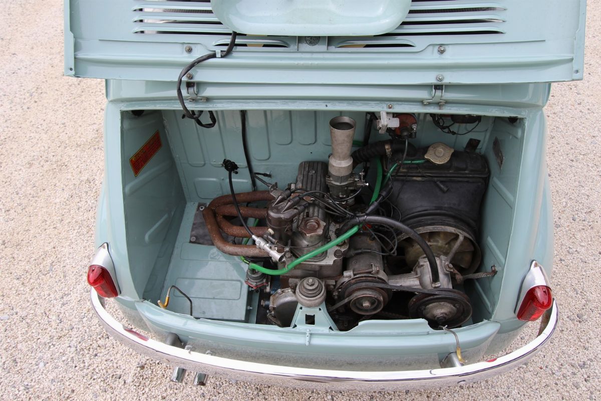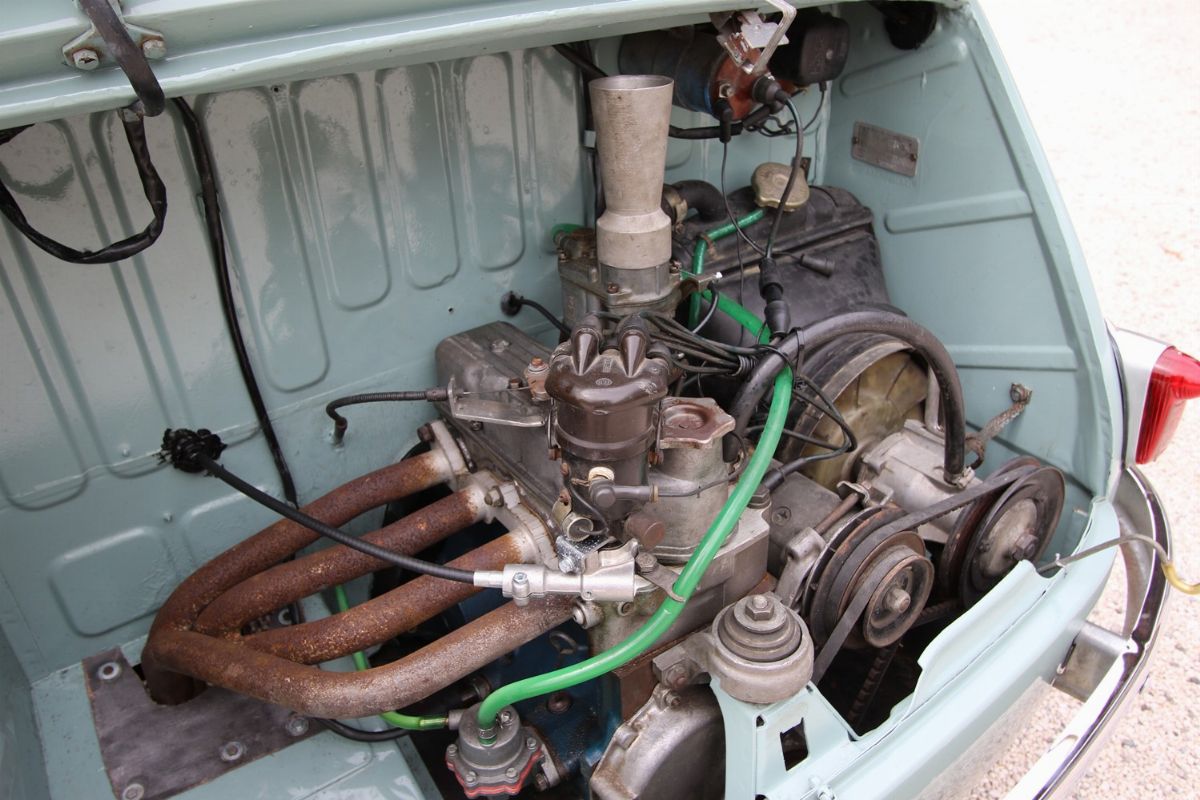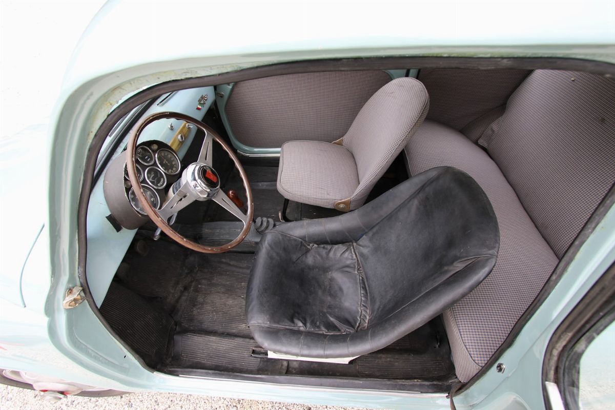 The Fiat 600, chassis no. 222606, was registered for the first time on October 1st, 1956 and its first owner was Salvatore Calascibetta, a well-known racing driver of the era, who used it with great success in numerous races. It is in an excellent state following a recent restoration that has included the maintenance of many original parts. The bodywork (which is in its characteristic “azzurro cenere” color), sliding windows and interiors are all very well-kept, the latter notable for its anatomical seat on the driver's side, typical of the period. A precious dashboard complete with additional instrumentation surrounds the NARDI sports steering wheel once again of the era. The car was originally set-up by the noted MUCERA workshop in Palermo, with the famous “cassetta di derivazione Abarth 750” (a box full of dedicated racing parts). In fact, still today this car is a "derivazione Abarth 750" featuring the typical finned cast-aluminium oil pan, a bigger carburettor and special exhaust manifold and muffler. The AMADORI magnesium rims with rectangular holes to improve cooling and the wheel cups with aesthetic hubcaps are extremely rare. So far, it is the only known surviving example of Fiat 600 with a similar racing history, in fact, "Toto '" Calascibetta drove this car in several races all over Italy planning its races according to a road route that would track the "postal" ferry from Sicily. Notable among these were the Targa Florio (Palermo 1957), Pontedecimo-Giovi (Genoa 1958), Sassi-Superga (Turin 1958), Coppa Nissena (Caltanissetta 1959) and Salita del Monte Erice (Trapani 1960). The equipment of this Fiat is completed by some further period accessories including a steering lock, enamelled brass friezes with Italian flag and checkered flag, additional central headlight and Fiat written in italics on the front grille typical of the first Fiat 600 Abarth.State of the ArtRecent restoration of bodywork, interiors and a complete overhaul of the mechanical parts.