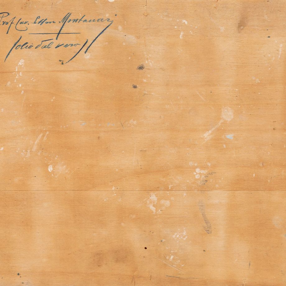 On the back, handwritten by the artist: Prof. cav. Ettore Montanari / (olio dal vero)