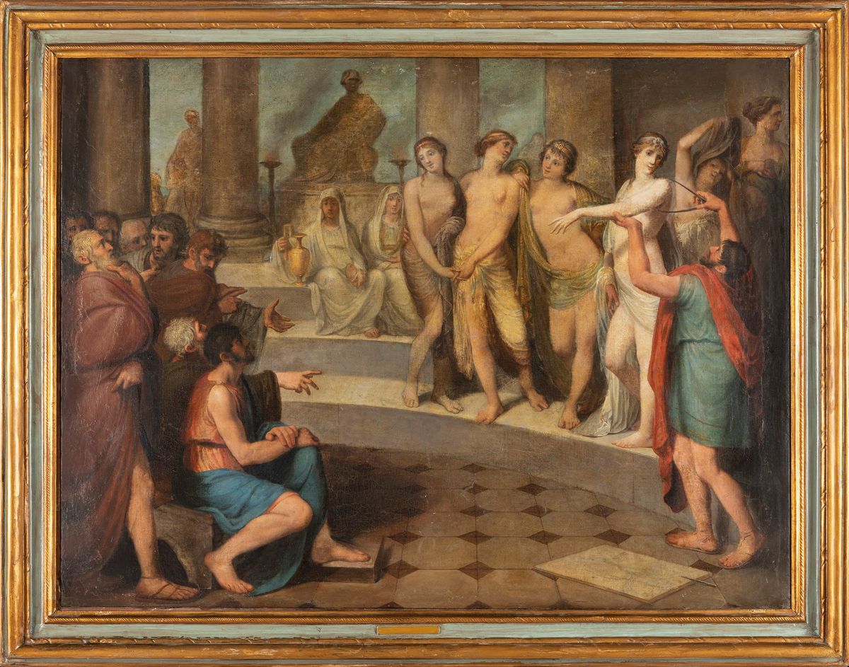 Giuseppe Errante, trained in Palermo and then in Rome, where he has been present since 1784 in the studio of the architect Giuseppe Barbieri, he was active in Naples, Rome, Civitavecchia, Ancona and Milan, where he combines painting with the teaching of fencing in his own school, frequented by Napoleonic officers. In addition to various altarpieces and frescoes for numerous churches around Italy, there are also works of mythological and allegorical subjects. Some of the latter were exhibited among other things in Milan in 1806 on the occasion of the arrival of Napoleon, where they were admired by the Empress Josephine. His style oscillates between a late-eighteenth-century education and more properly neoclassical accents, characters that can be identified in the work presented here and perfectly in line with the taste of the time.