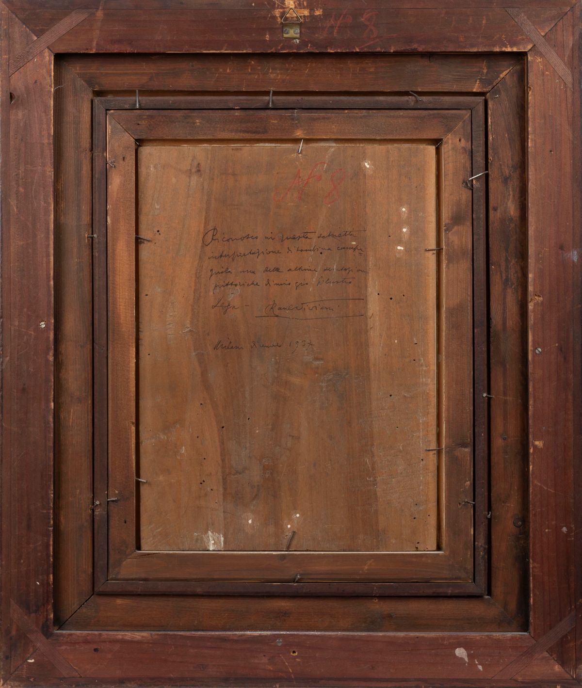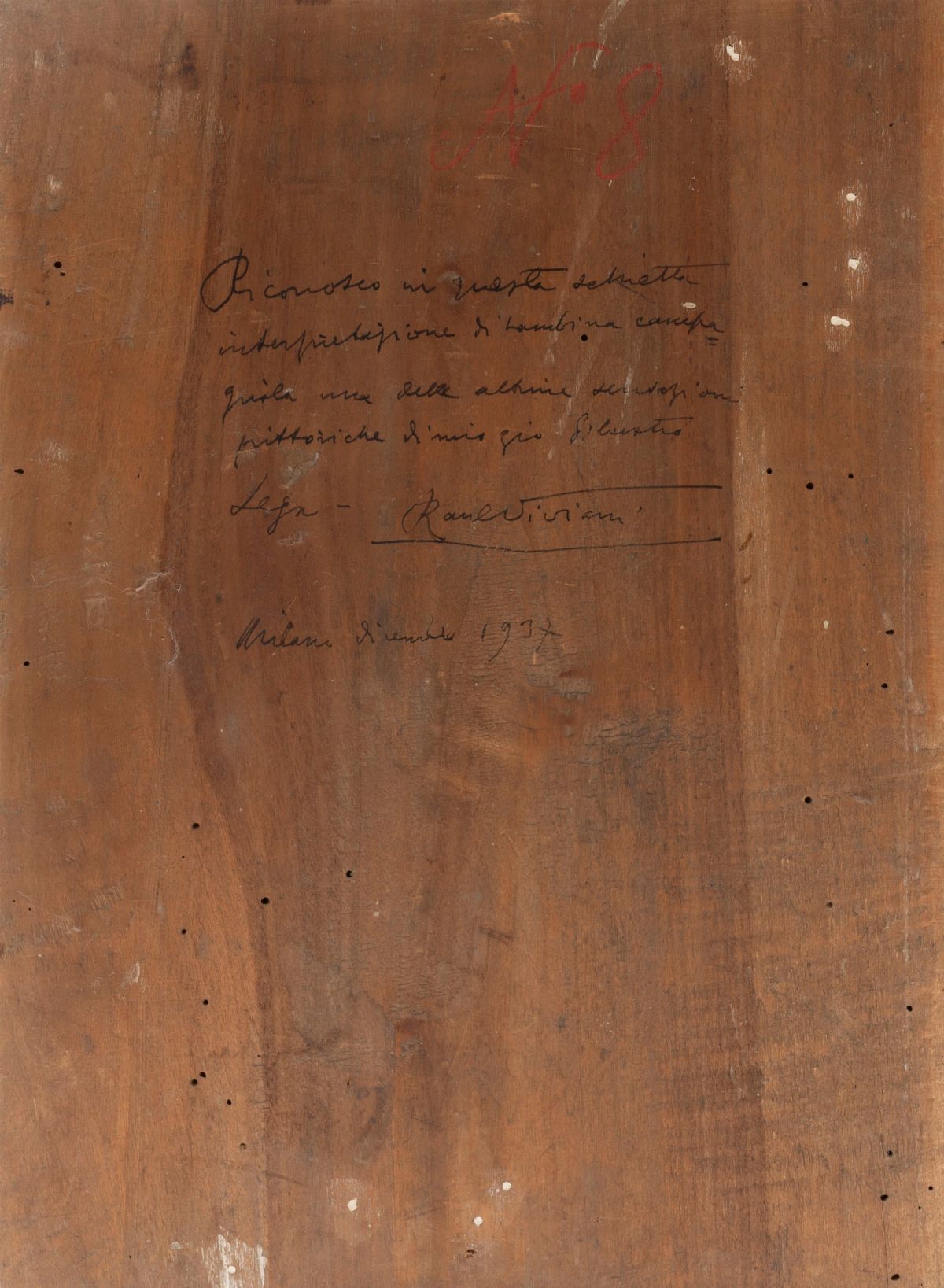 On the back, on the panel: handwritten declaration of authenticity: I recognize in this frank / interpretation of a country girl one of the last decorations / paintings by my uncle Silvestro / Lega. Raul Viviani / Milan December 1937; ancient reference number: N° 8.