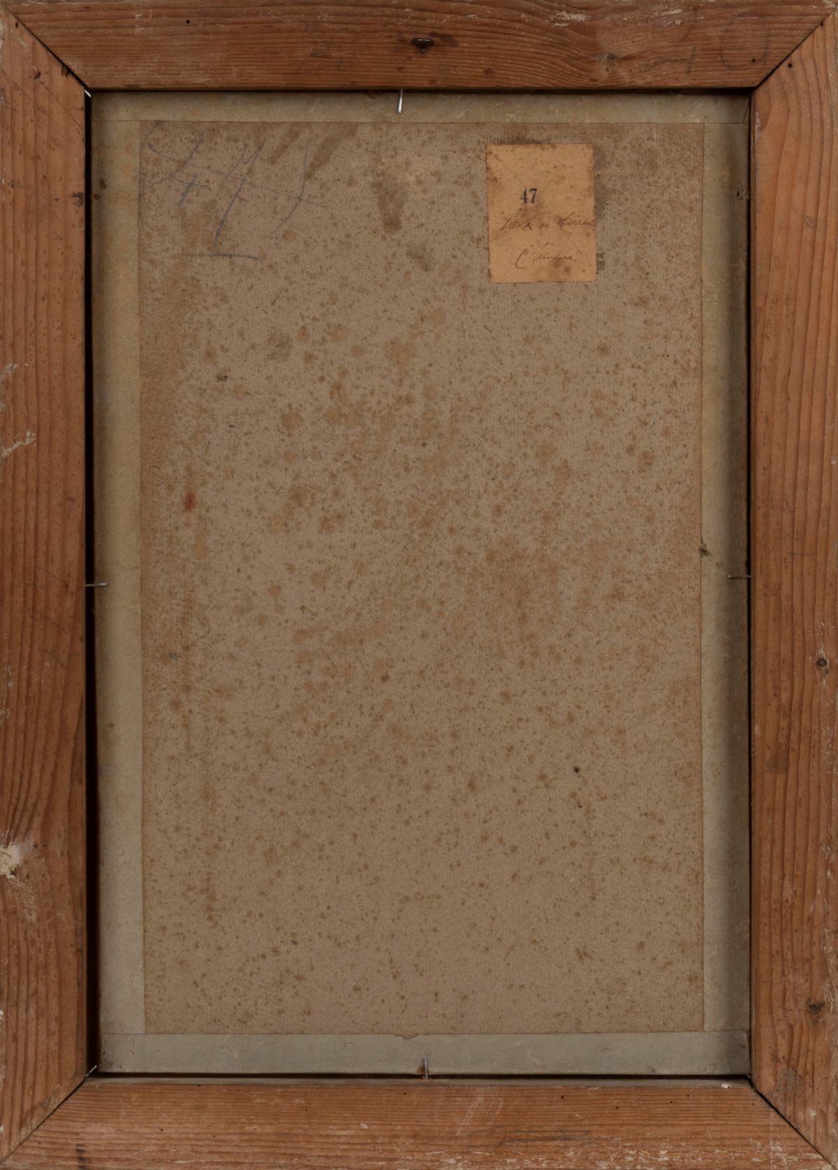 On the back, ancient manuscript tag with title, technique and reference number: 47 / "Cava de' Tirreni" / (tempera); reference number (47).