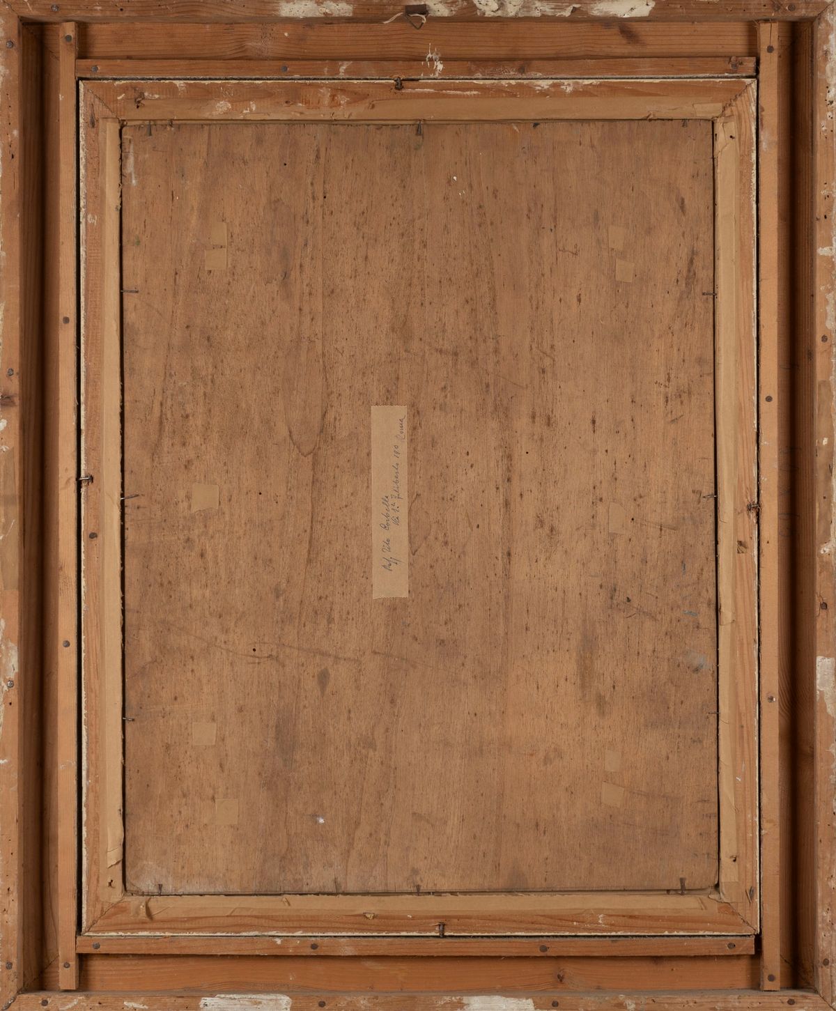 On the back, ancient handwritten label with the painter's name and address (Prof Tito Corbella / Via E.le Filiberto 190 / Rome).