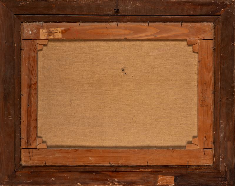 on the back, on the frame, painter's label