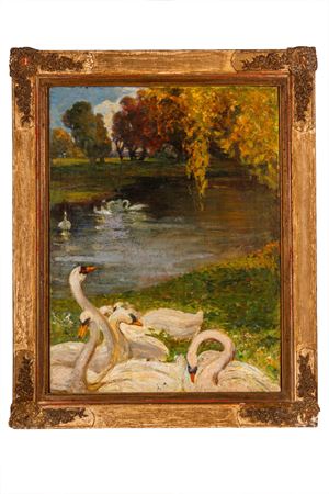 on the back, on the stretcher, ancient inscription: Studio per il dipinto La guardiana dei cigni di L. Rossi