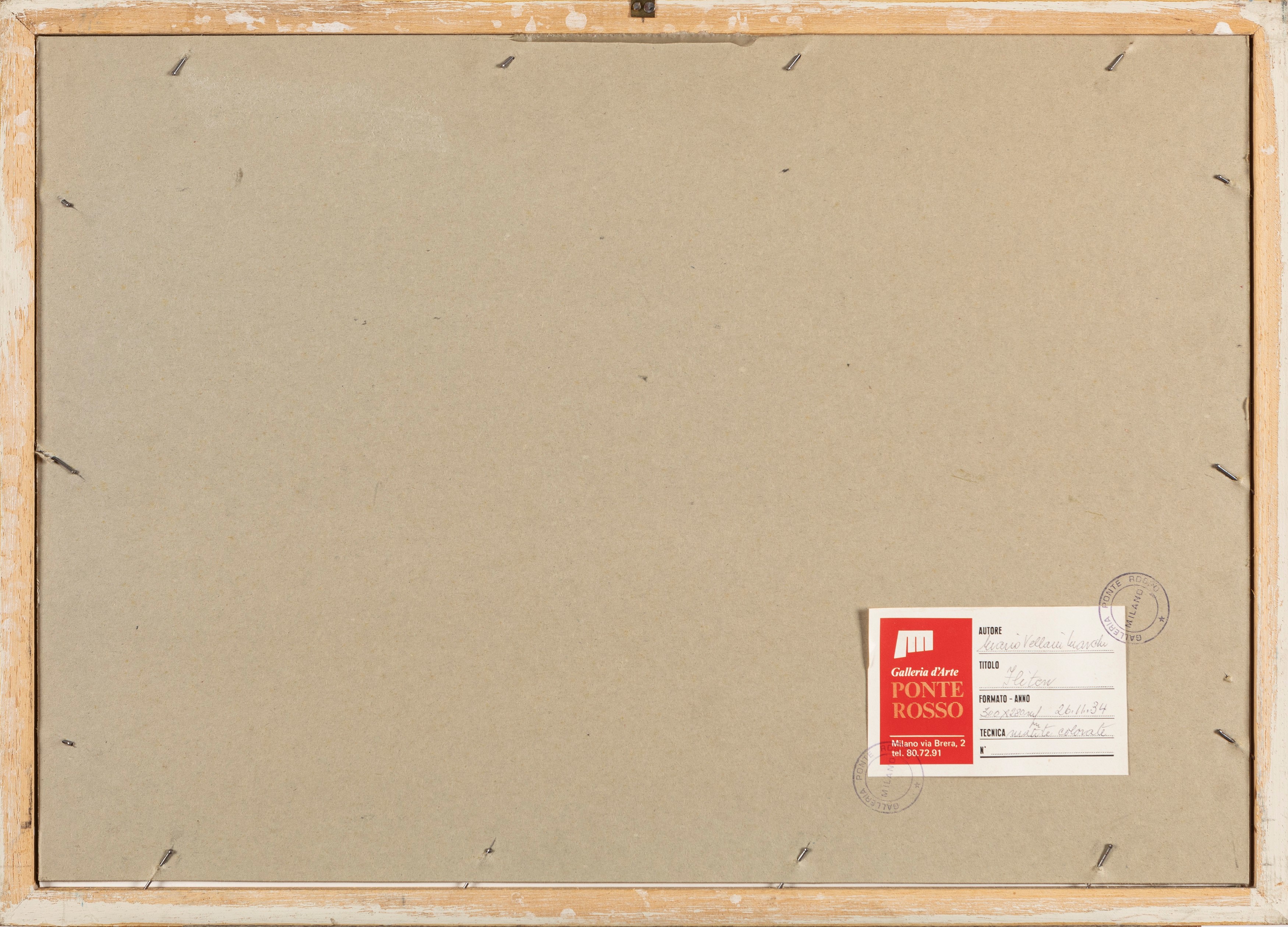 on the back, on the closing card, stamps and label of the Ponte Rosso Art Gallery in Milan