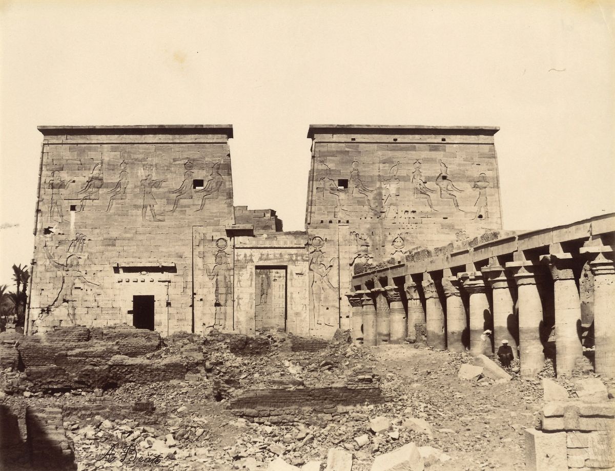 Phile, Les colonnades du Temple d'Isis ; Phile, Pylone avec les cononnes, 1980s