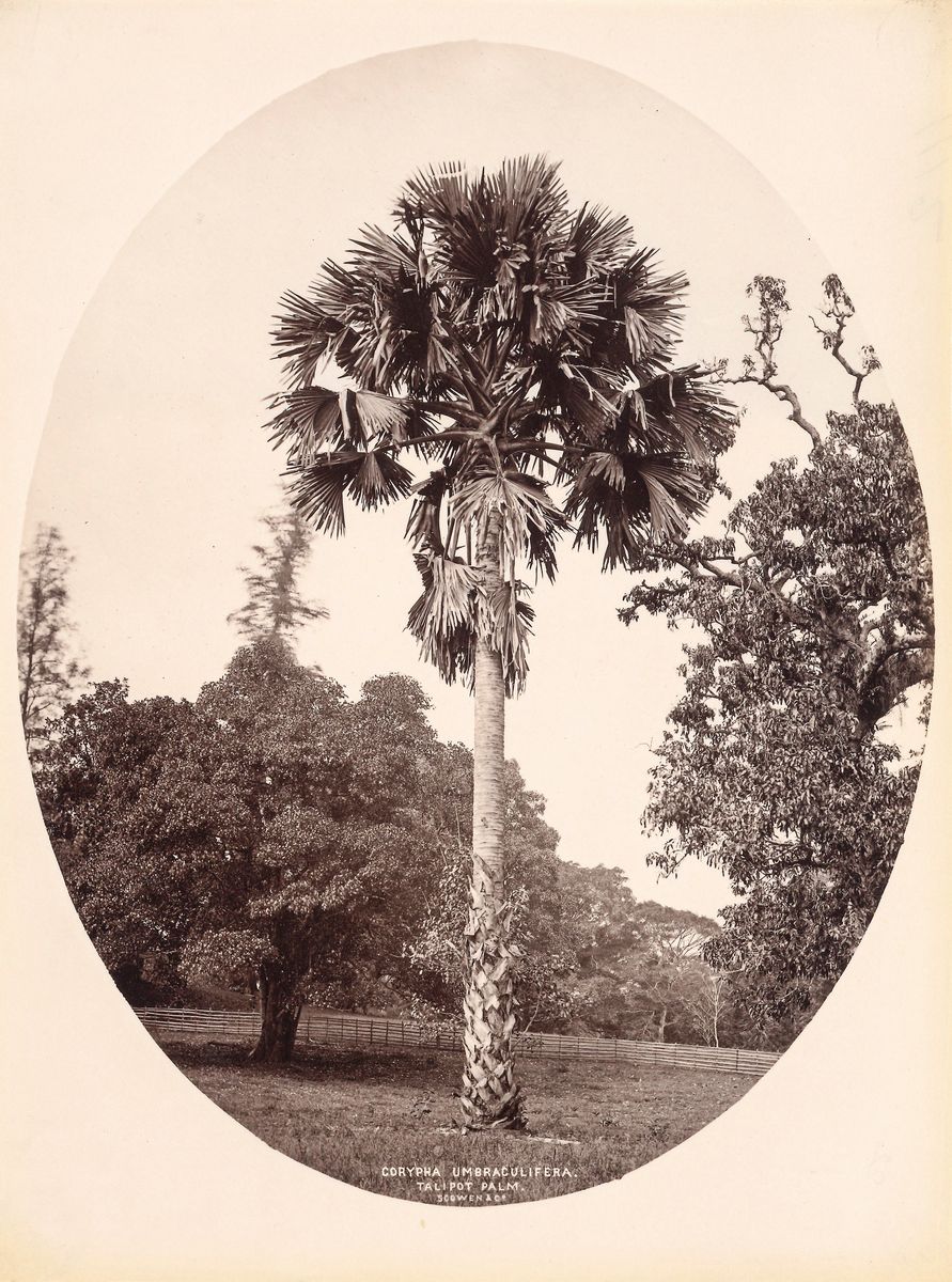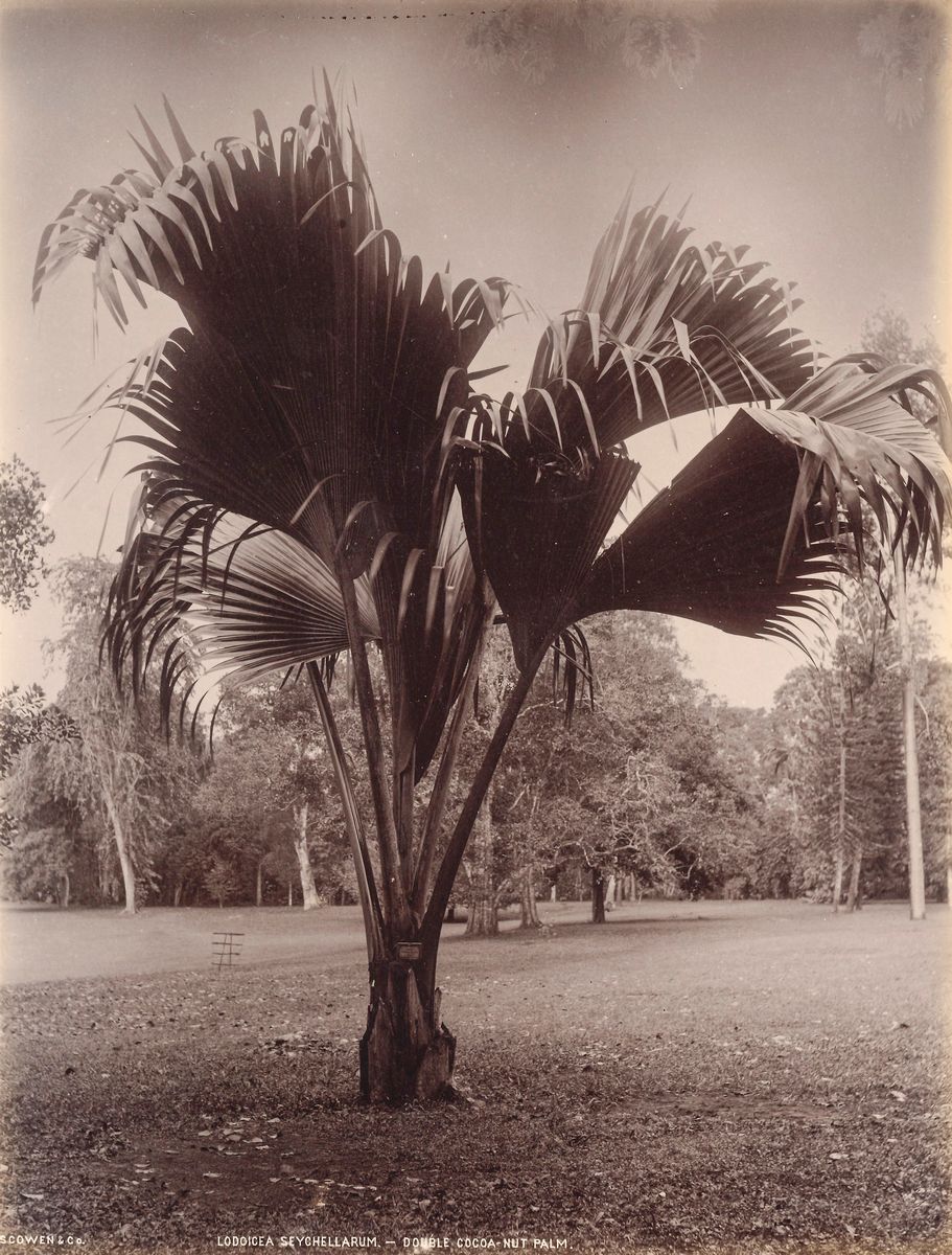 Corypha umbraculifera, Talipot palm ; Lodoicea Seychellarum - double cocoa-nut palm, 1870s/1890s