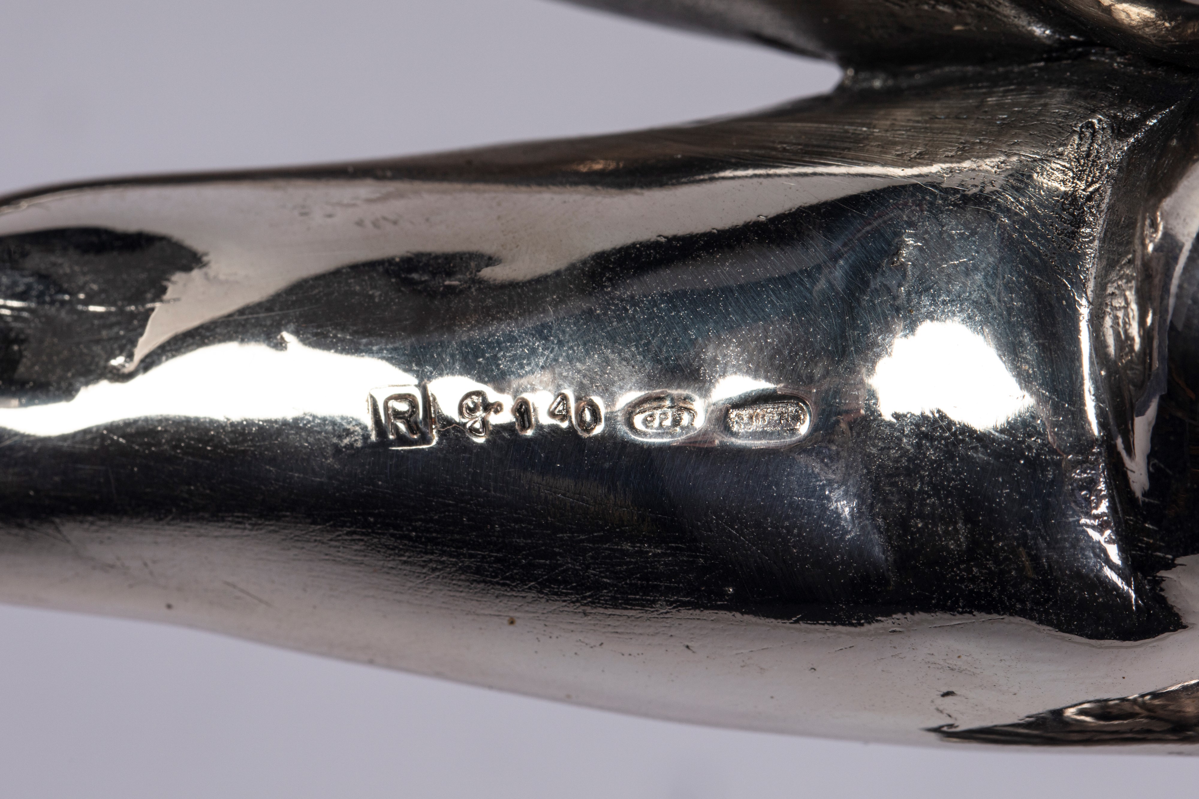 covered in 925 silver foildepicting the Riace Bronzes, signed A. Santini at the base, resting on square marble bases.