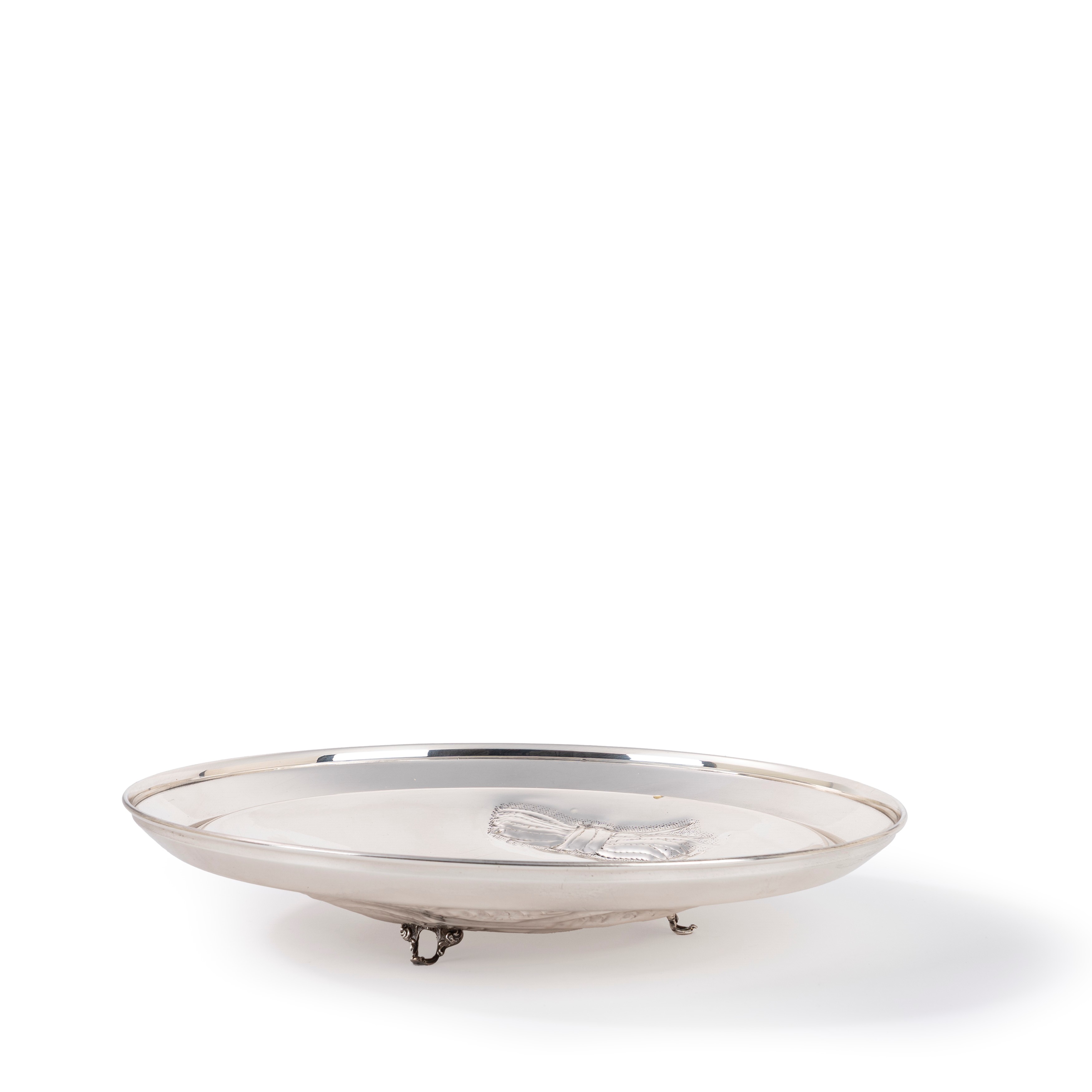 in 925 silverwith smooth hollow with embossed wheat ears, supported by three wavy feet.