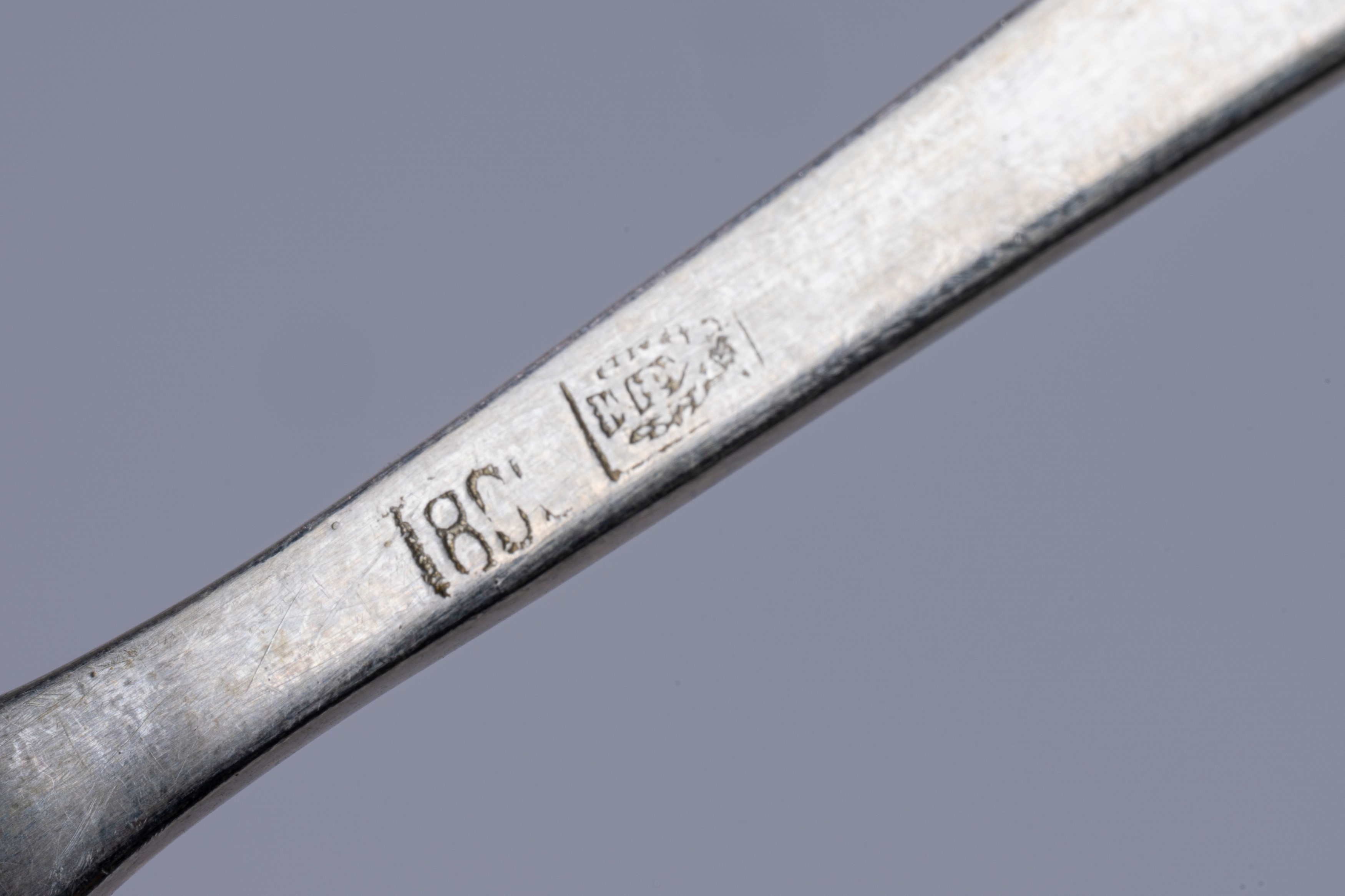 in silverwith finely engraved scroll-shaped grips, with the SR monogram on the back,