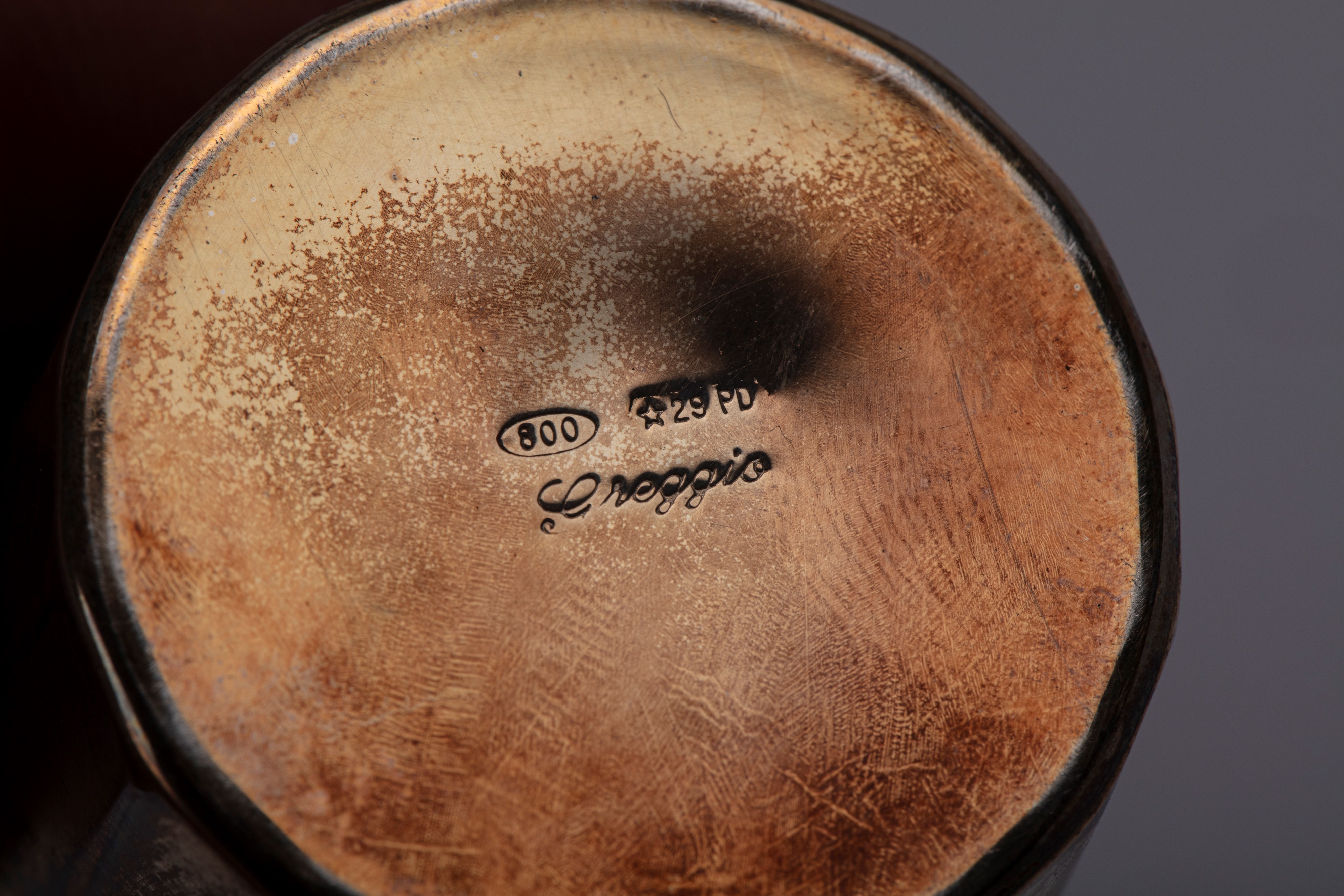 in silverwith a faceted body.