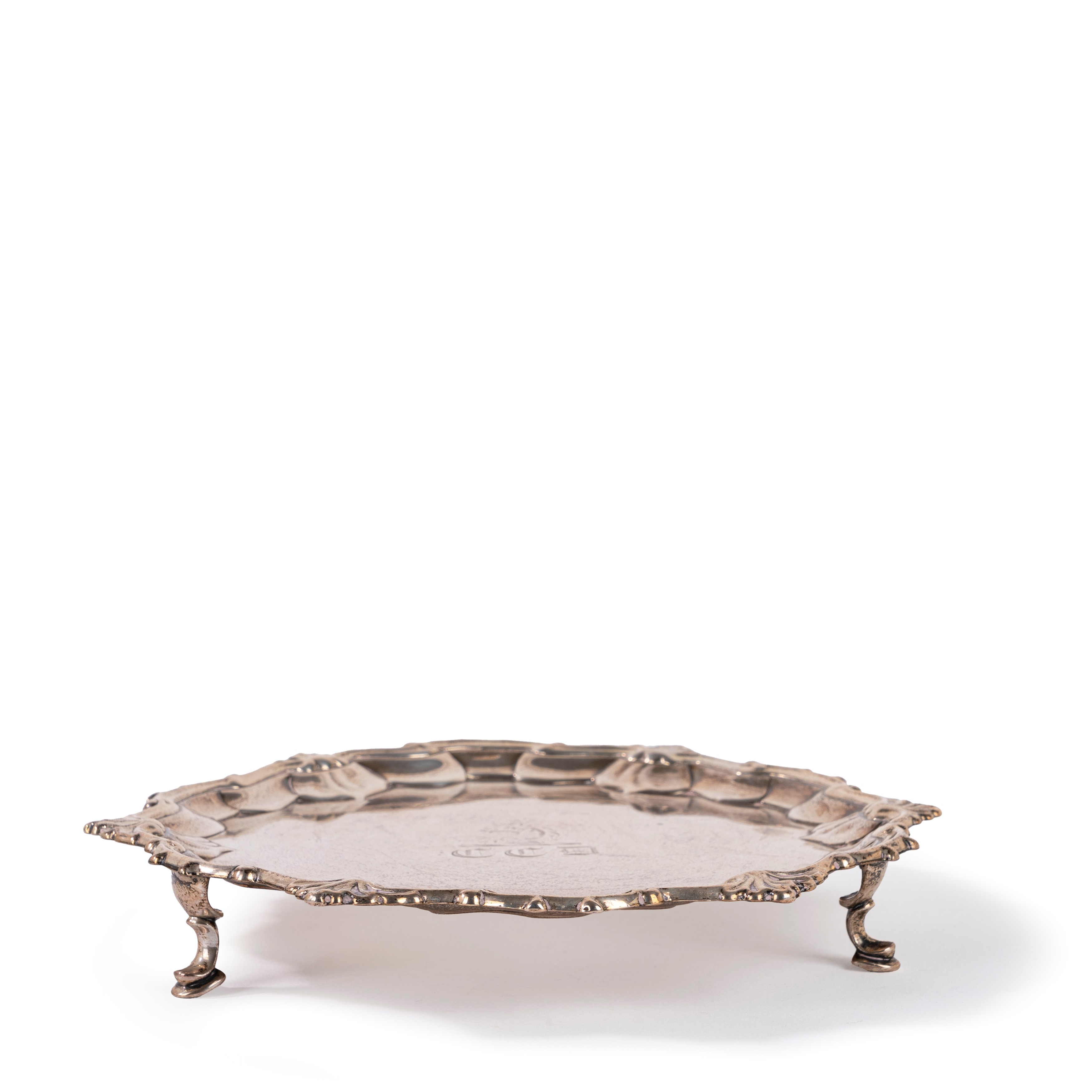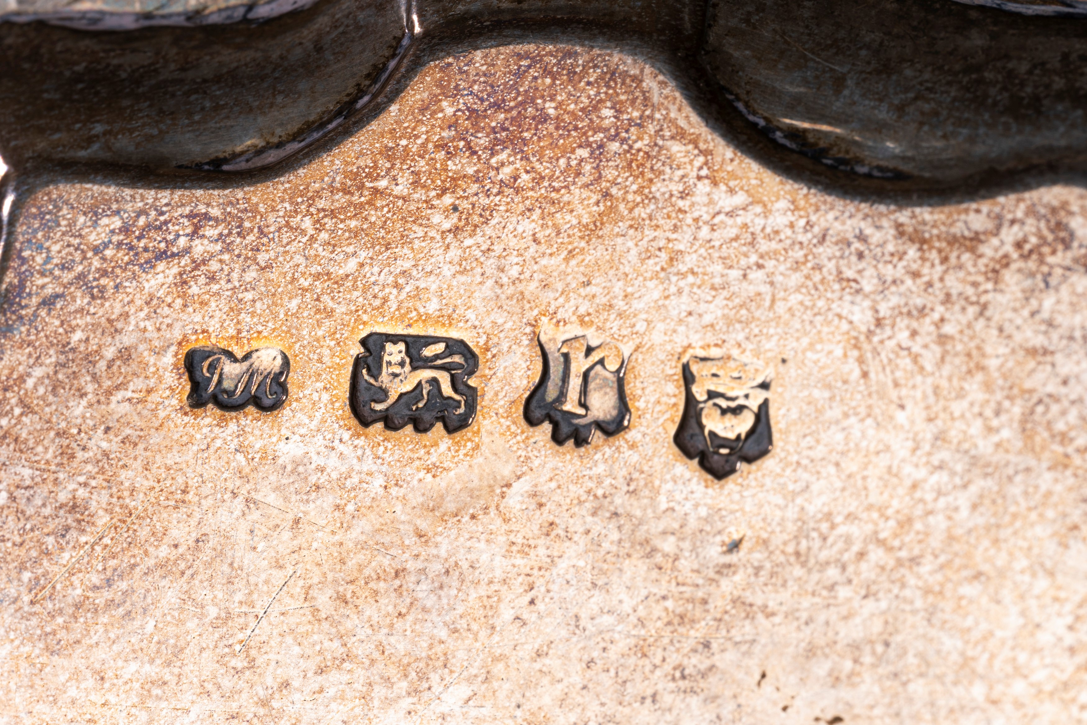 of a circular shape with a chiseled edge with stylised motifs and a hollow engraved with a monogram and horse's head.