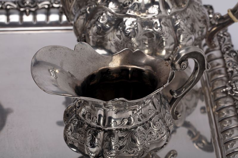composed of teapot, coffee pot, milk jug, sugar bowl, and tray,