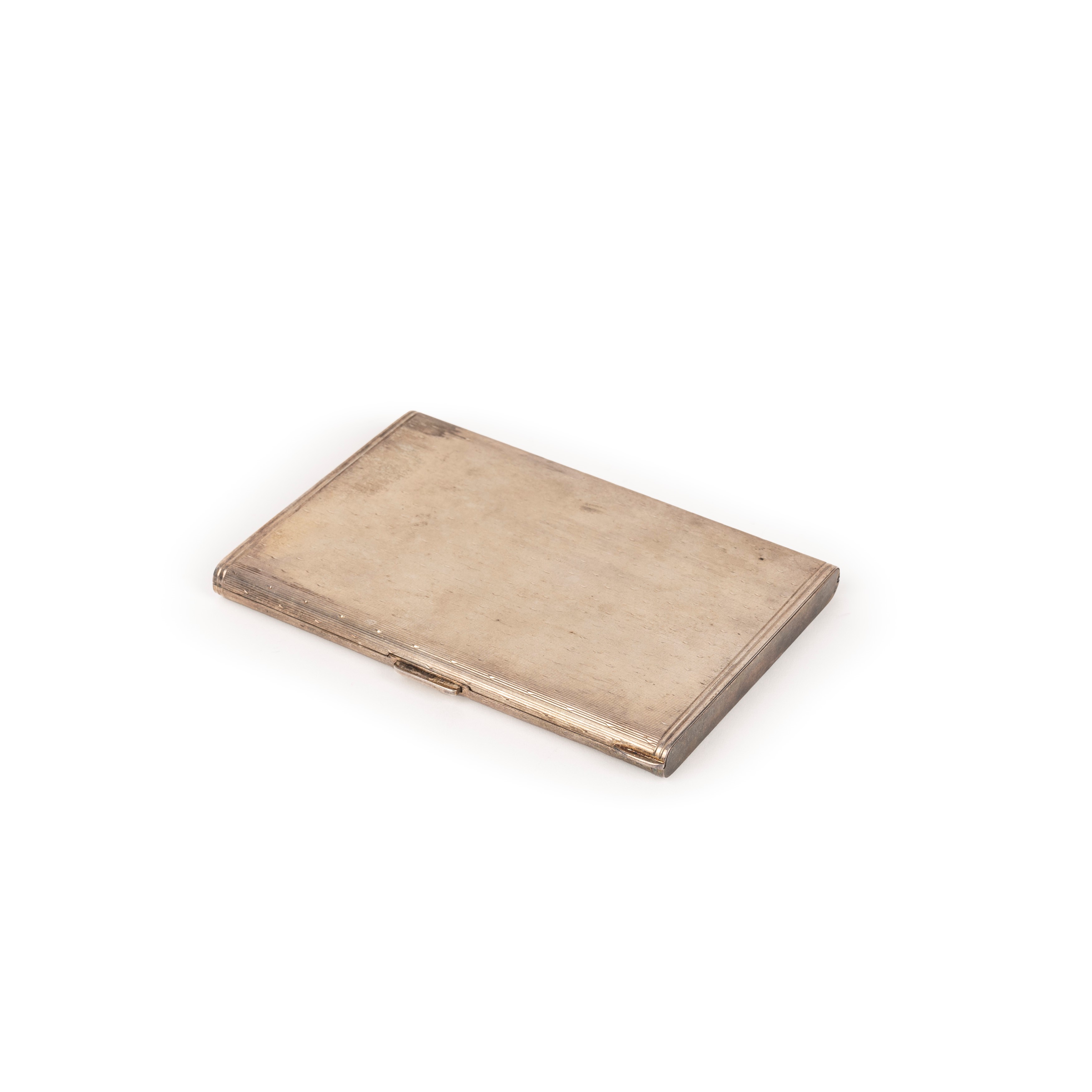 rectangular in shape, body with engraved decoration, reserve with initials inside.