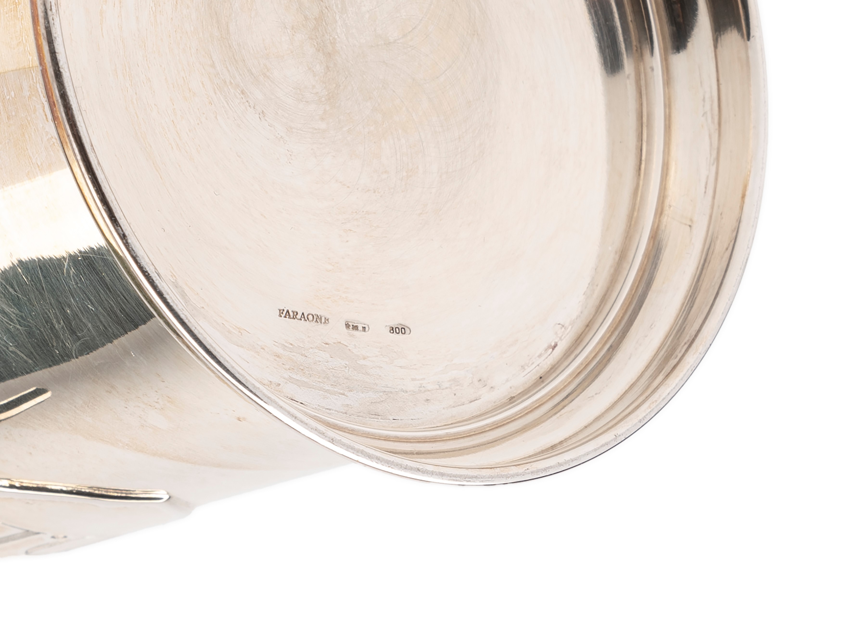 in silverlarge glacette with octagonal lid with grooved edges (h cm 16,00 x diam 21,00) and glass with reserve with engraved numbers "D.L." (h cm 10,00).