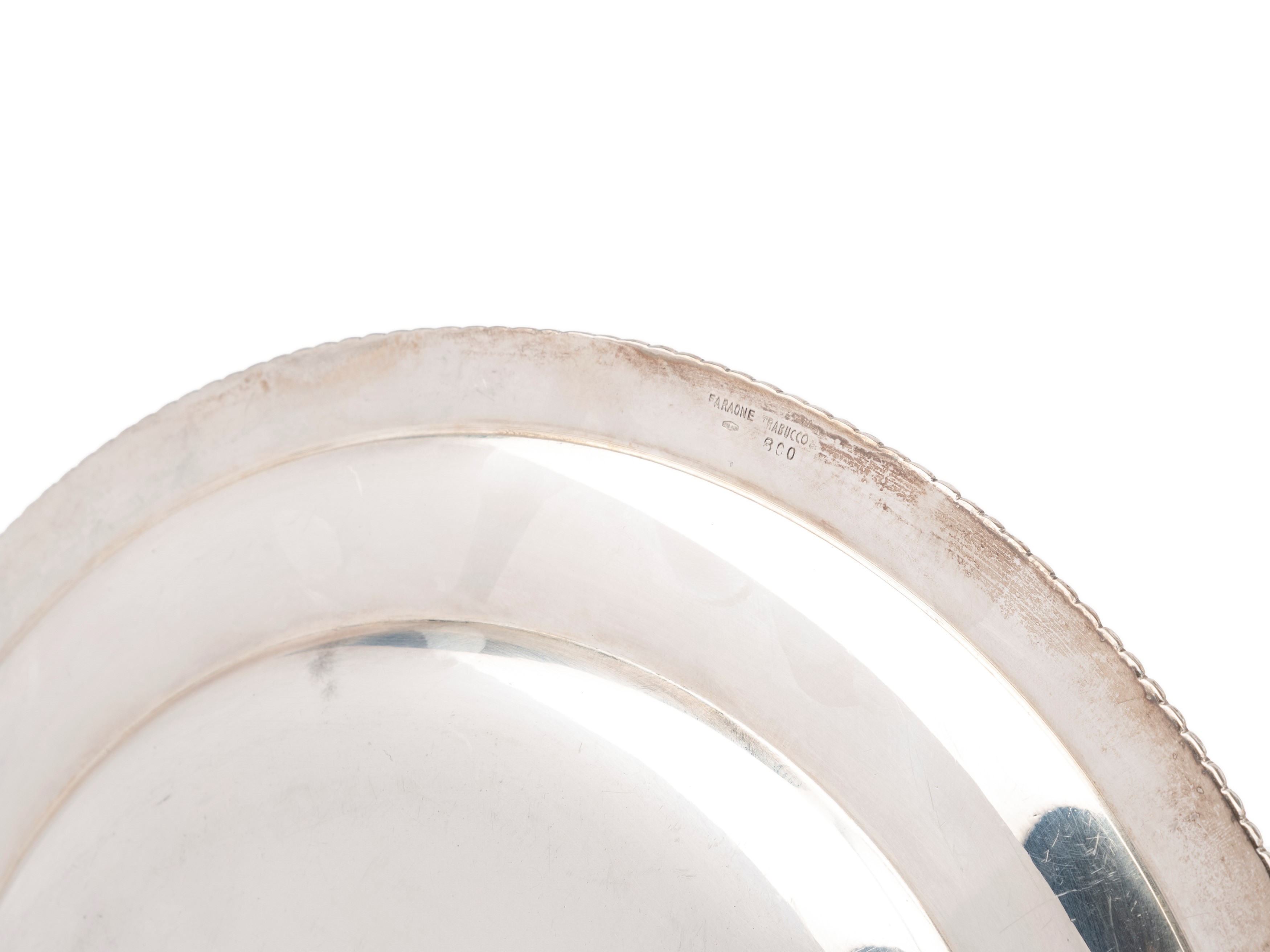 in silversmooth, with creased edge, composed of nineteen circular plates, ten of which for fruit (d cm 22,00) and nine for bread (d cm 16,00), and seven finger-washing bowls (d cm 14,00).