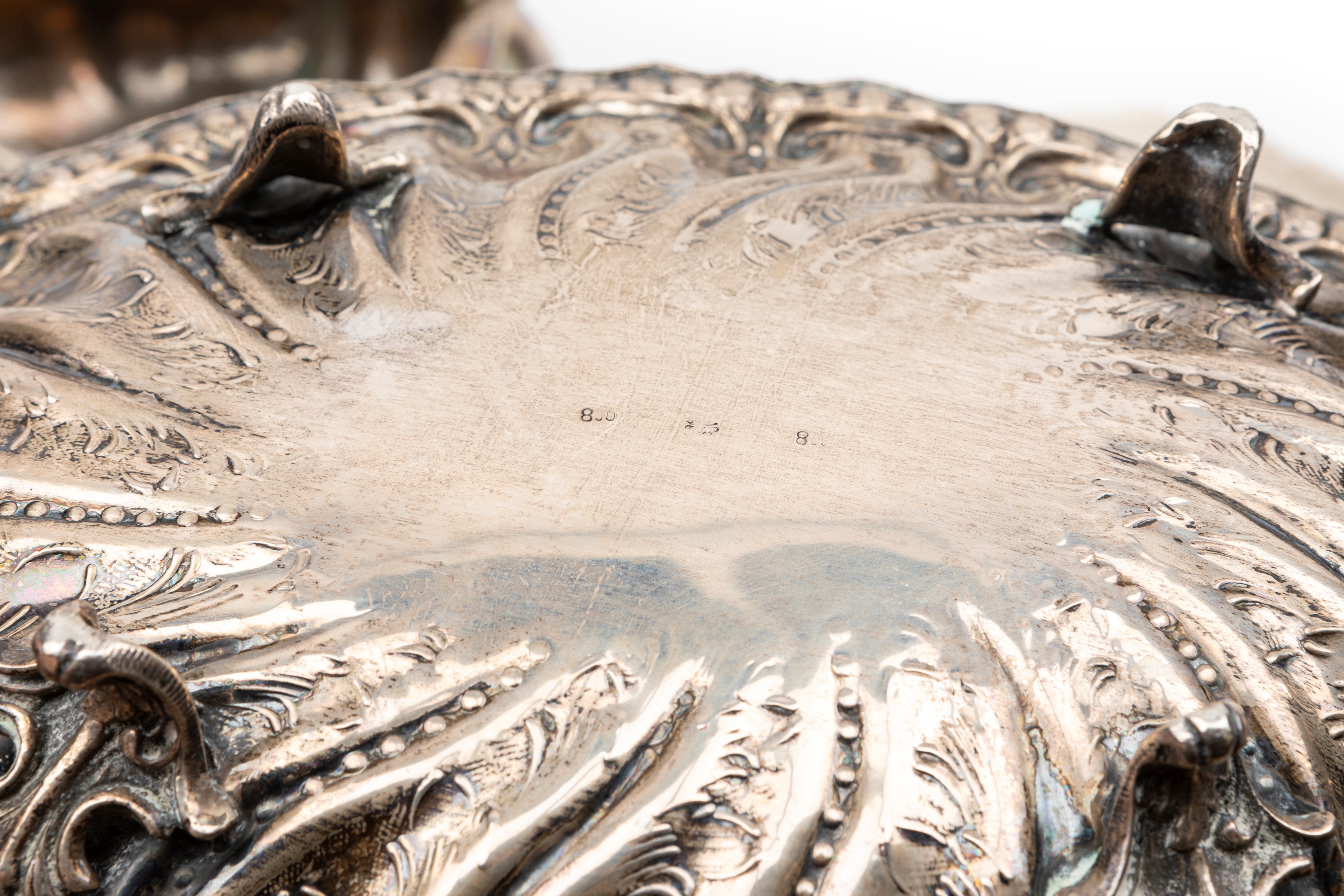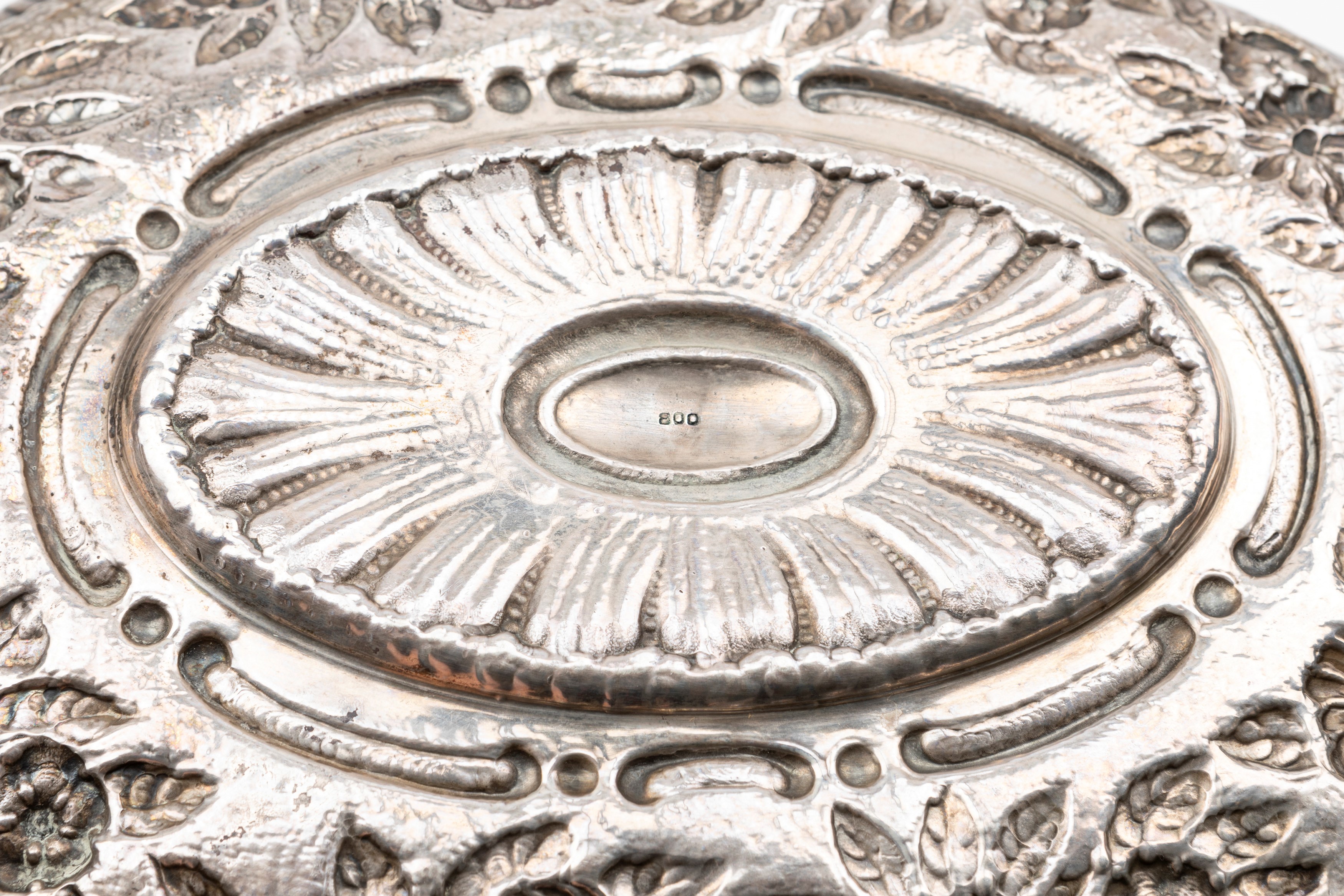 in silverwith engraved and embossed decorations, of different sizes.