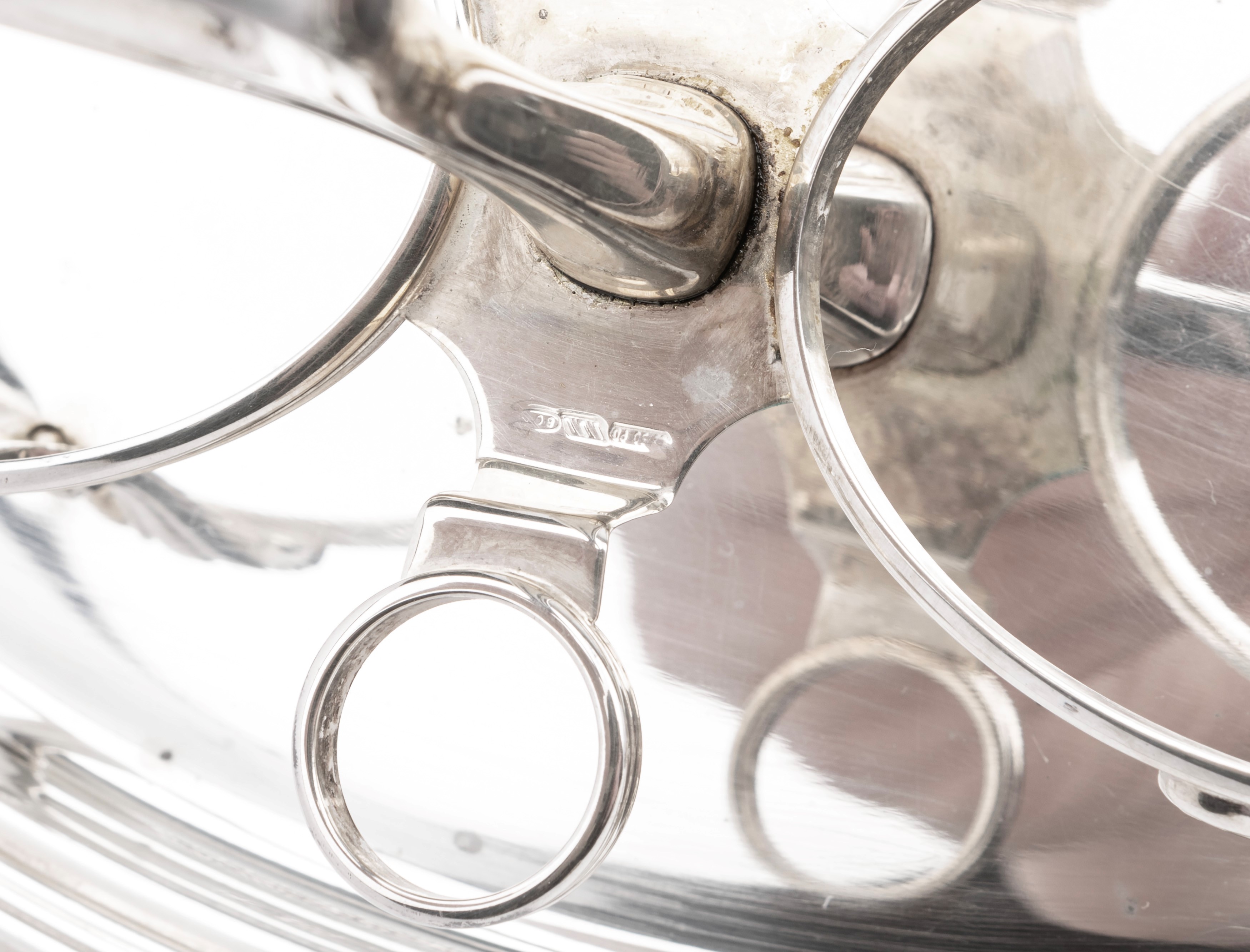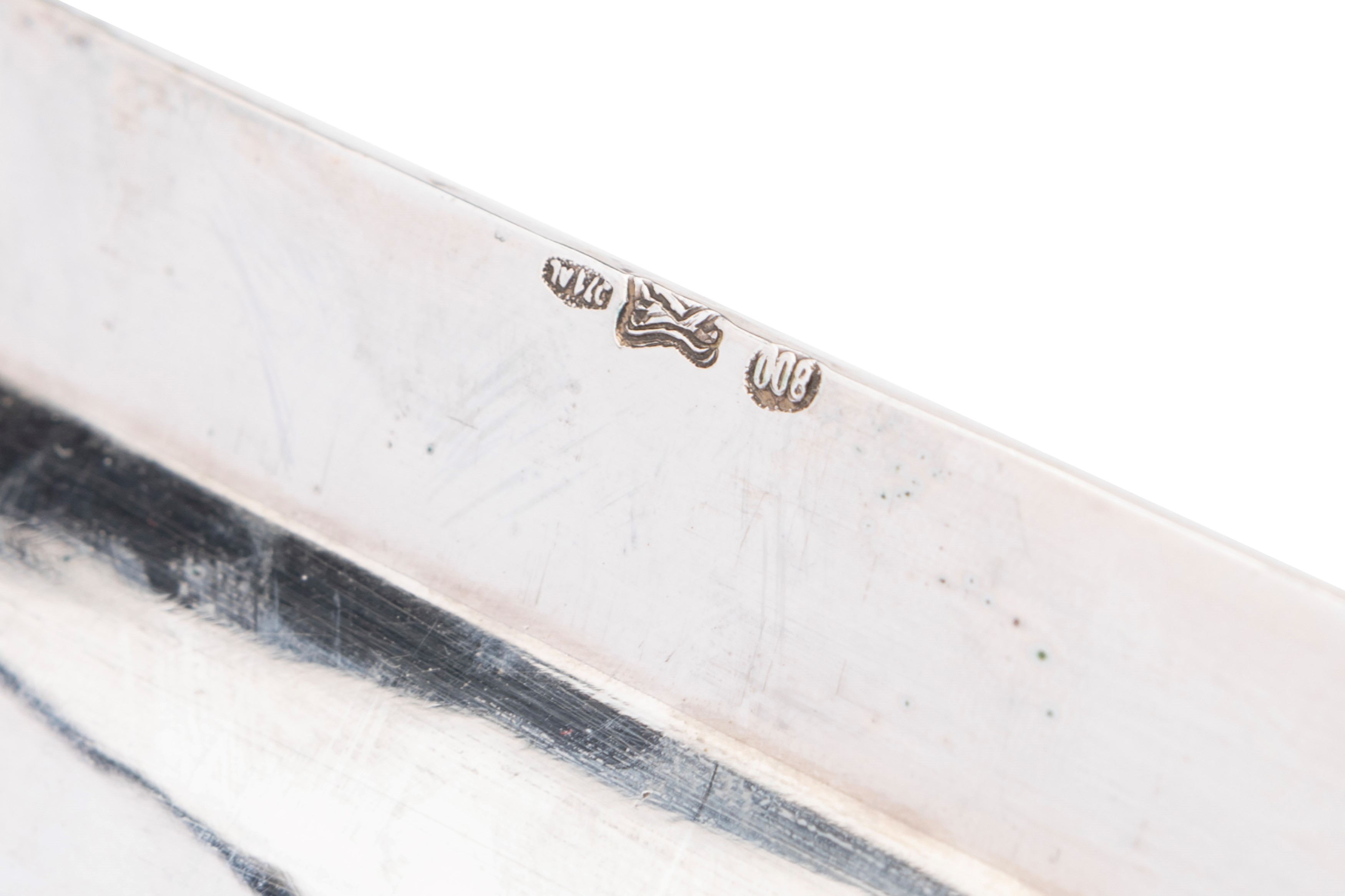 in silvercomposed of an oval tray (l cm 35,00), a rectangular tray with two handles with Empire style decoration (l cm 30,00), an oil cruet (without the ampoules), two shaped bowls and a strainer.