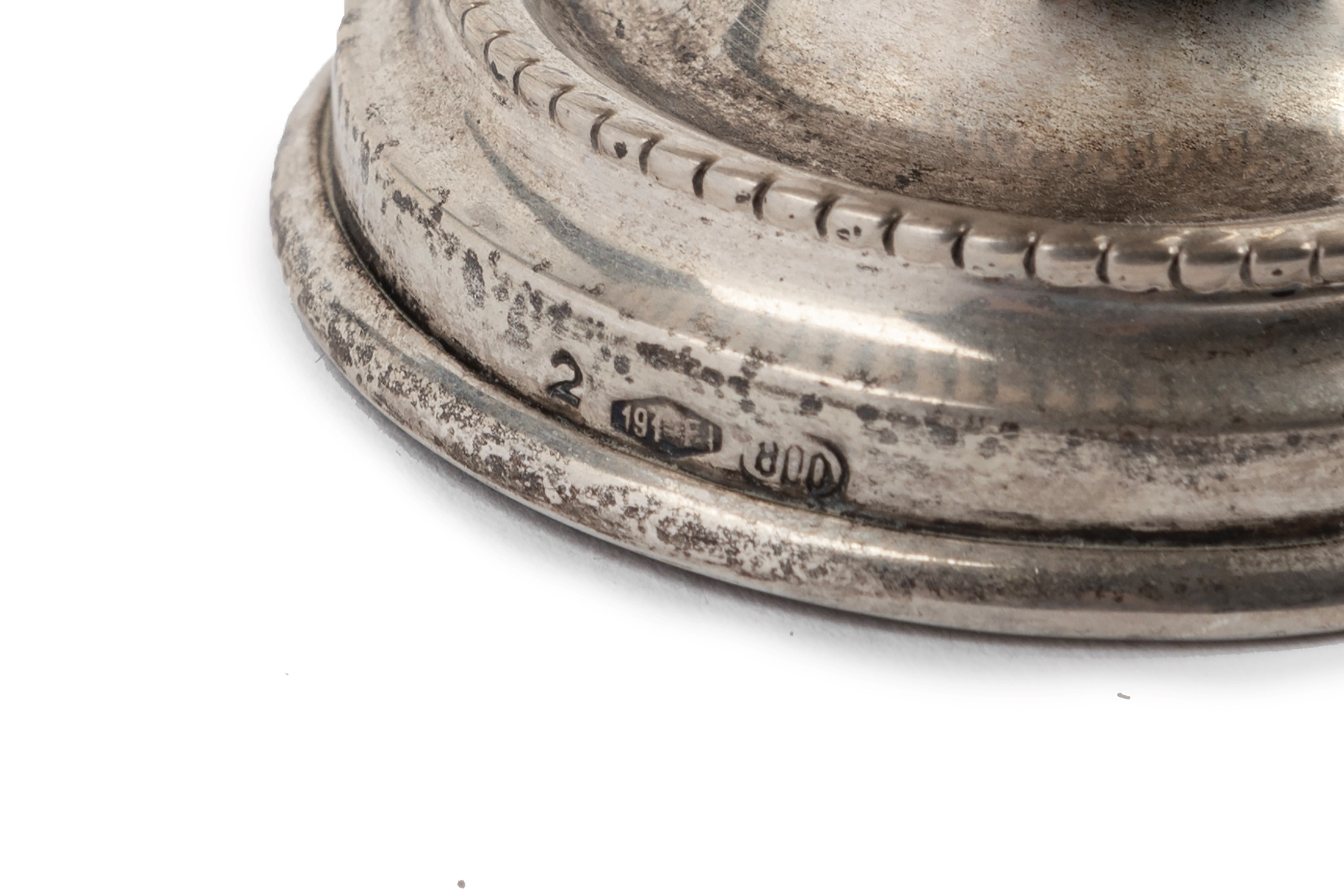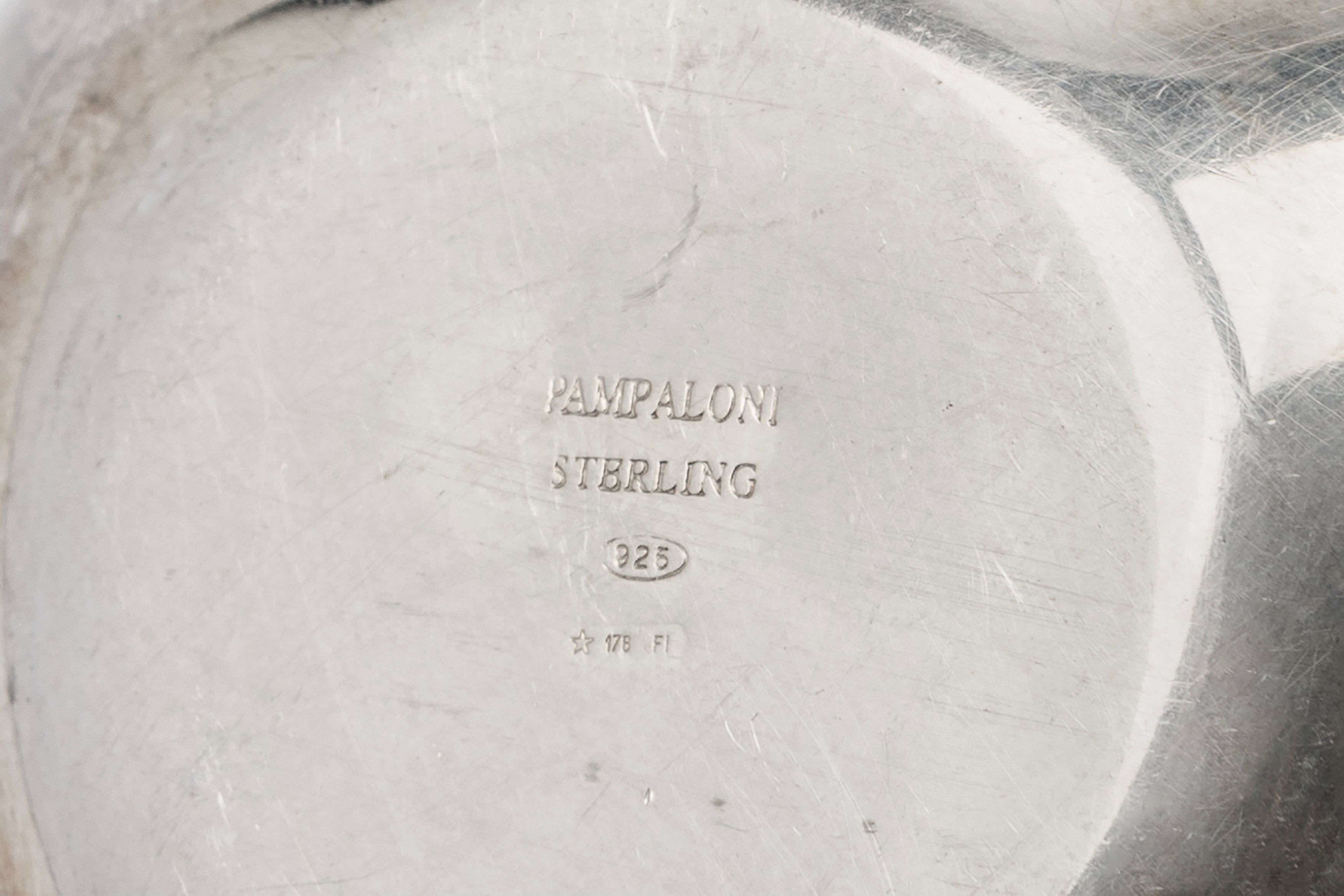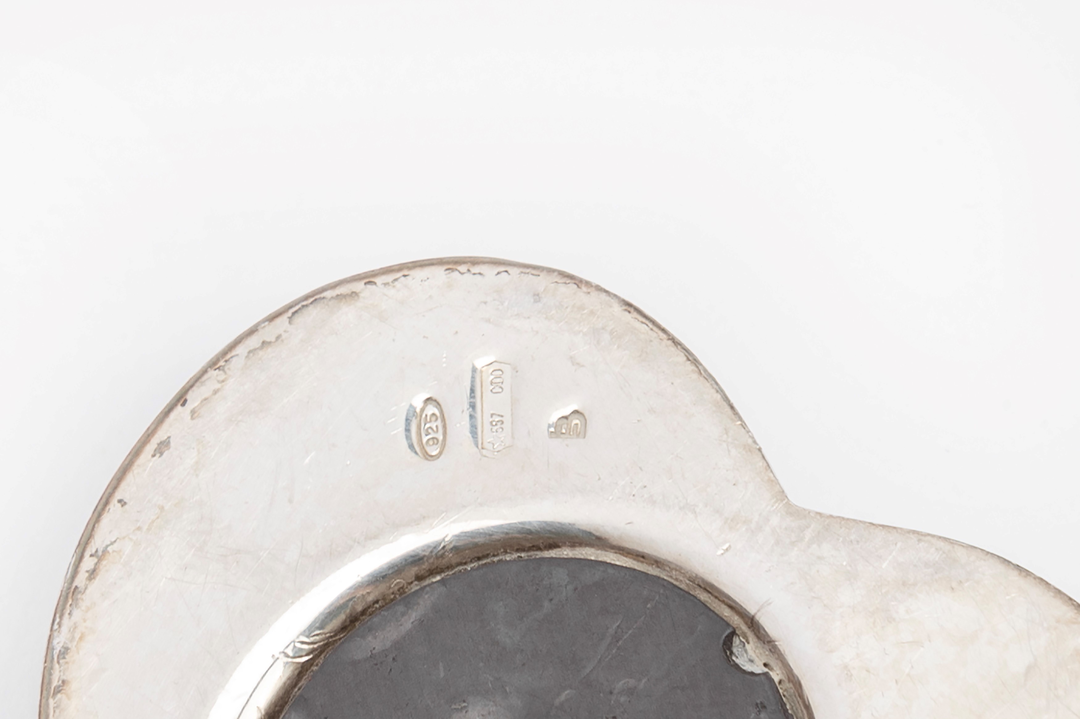 in silvercomposed of: a square tray with cord profile (cm 33,00x33,00), three bowls of different sizes (diam cm 27,00-23,00-13,00), a cup, a small sugar bowl, a jar, a small mug, a triangular bowl, a ladle, two small boxes, a flower-shaped bowl, a pair of holders napkins with small corals, a napkin holder with embossed decoration with putti and engraving, a grape scissors, a heart magnet, two sugar spoons and four coffee spoons.