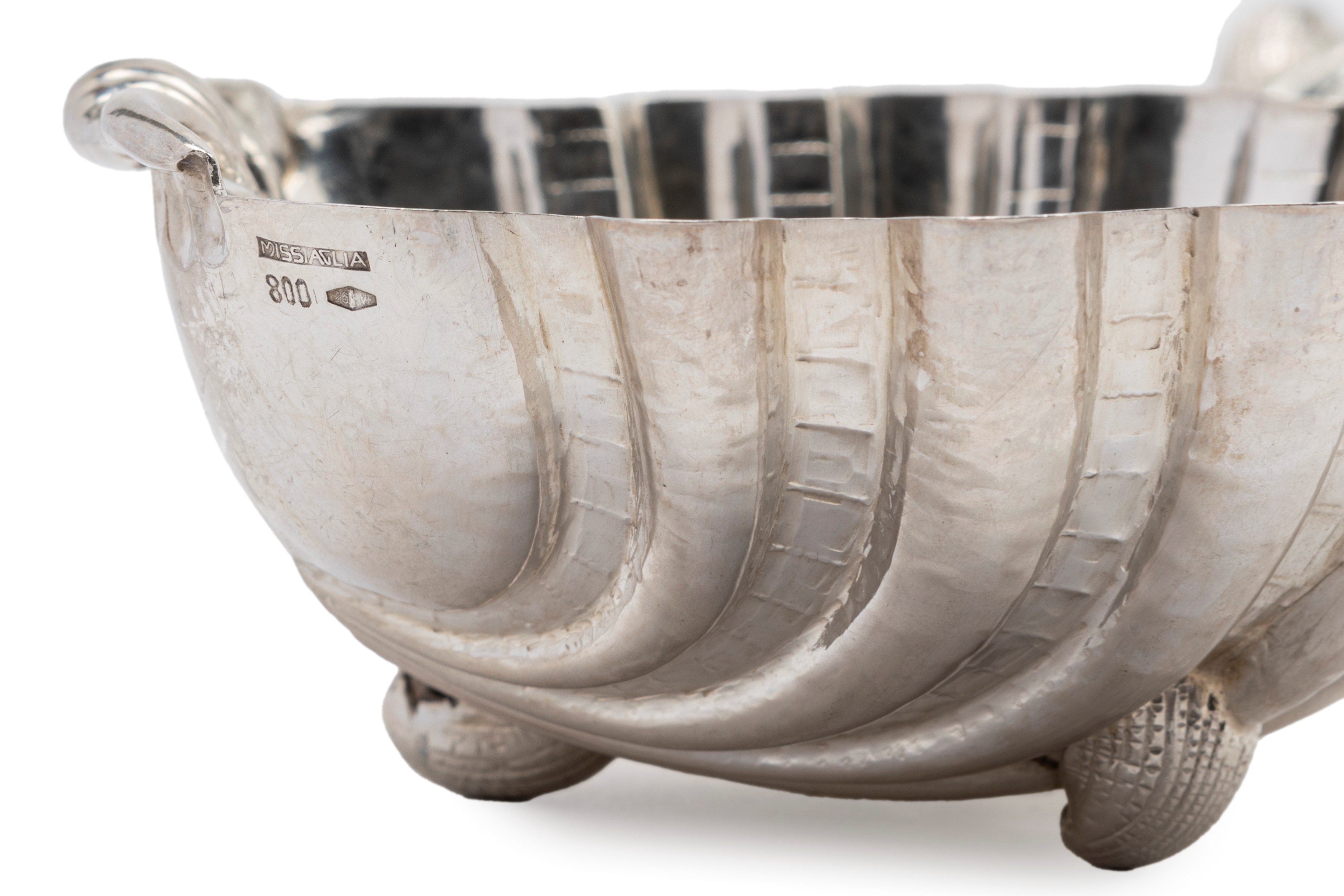 composed of a bowl (diam cm 27,00) and six shell cups (diam cm 13,00), resting on three shell-shaped feet.