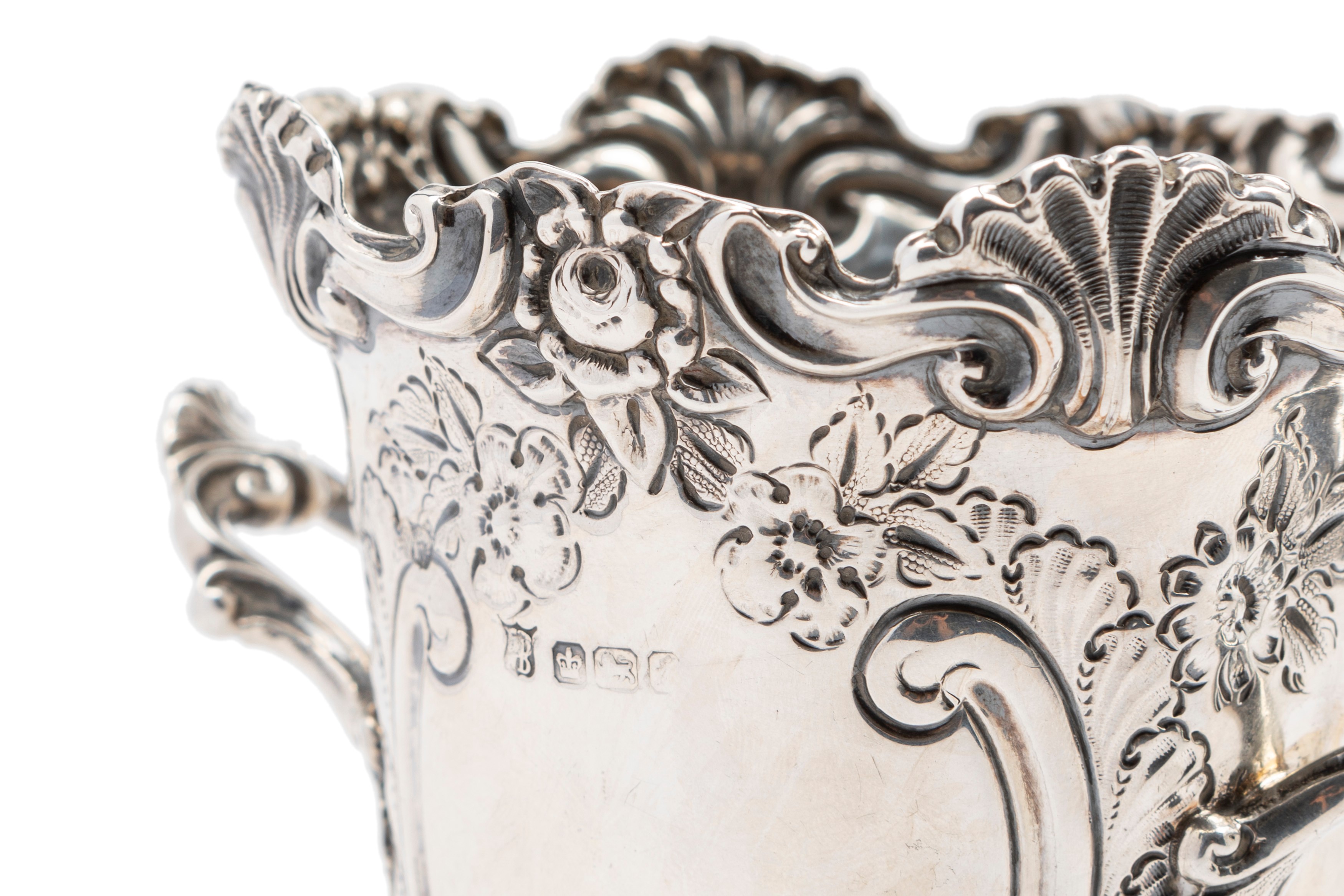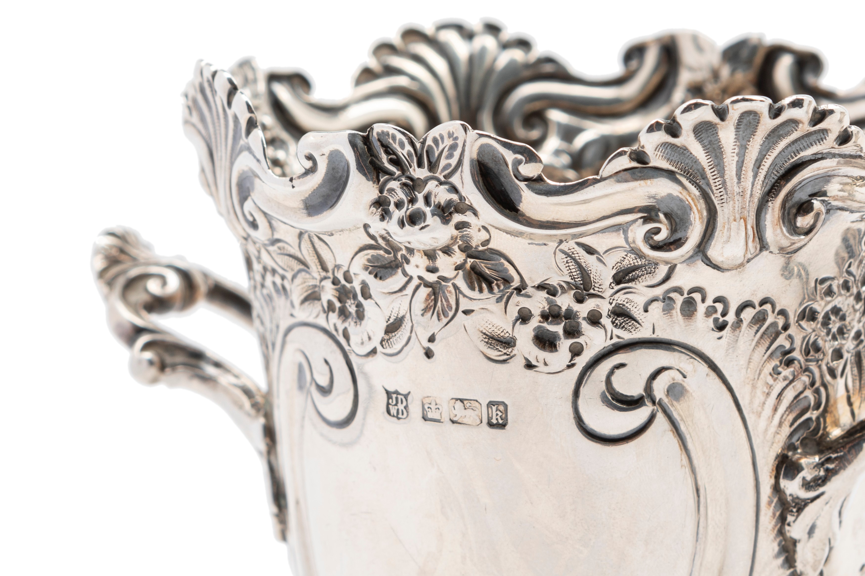 double-handled, finely chiselled with rocaille motifs,