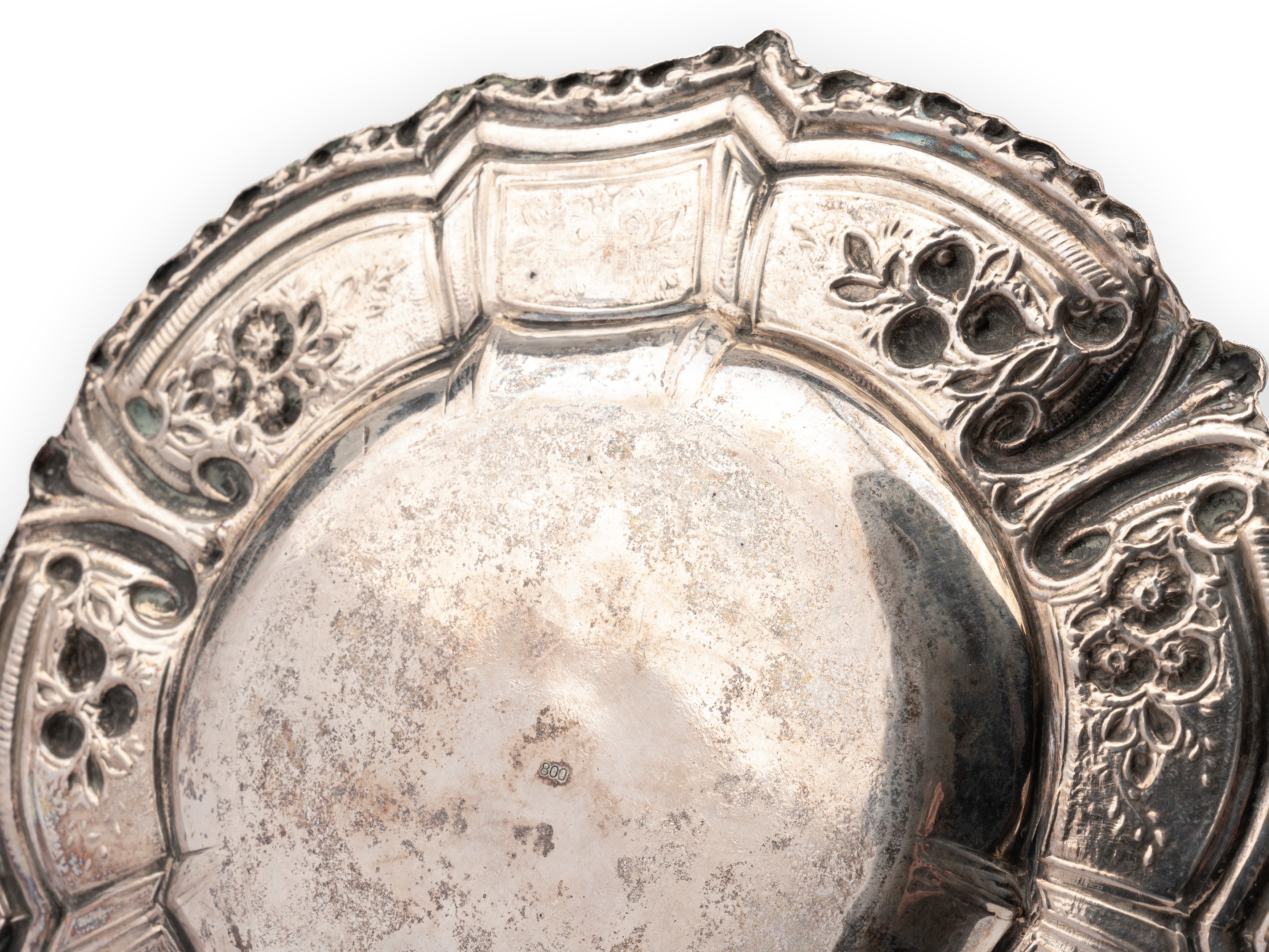 in silverwith rich embossed and chiseled floral decoration.