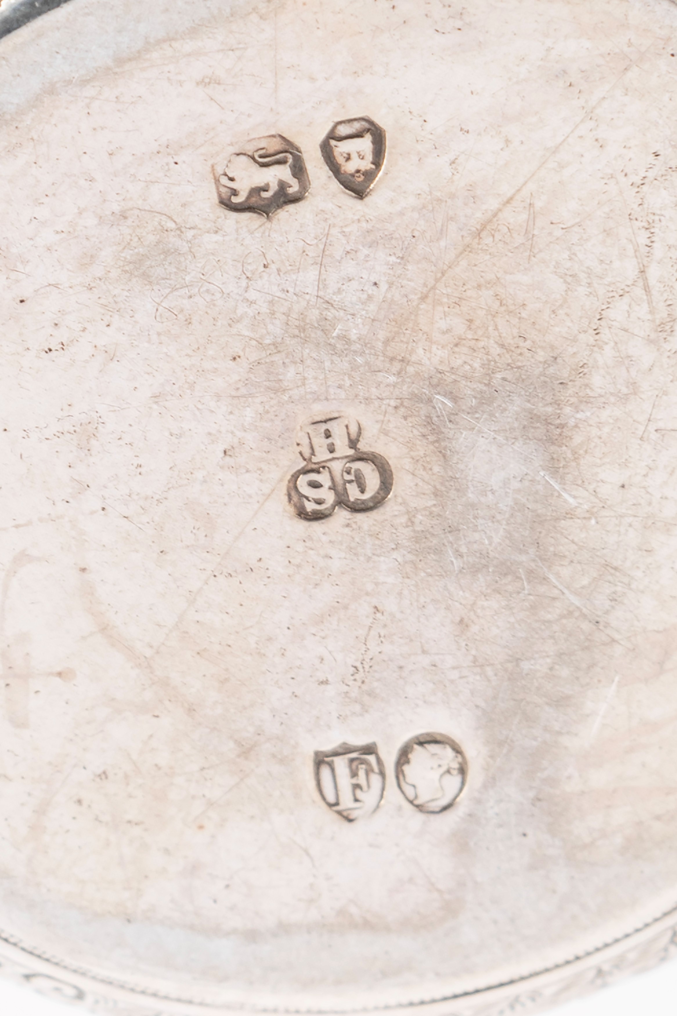 composed of a teapot (h cm 12,00) with wooden handle and grip, with chiselled and embossed decoration depicting hunting scenes and monogram, milk jug (h cm 9,00) and cup (h cm 27,00) with vermeil interior, embossed and chiseled with zodiac signs and monogram, defects (crack of the wooden knob of the teapot).