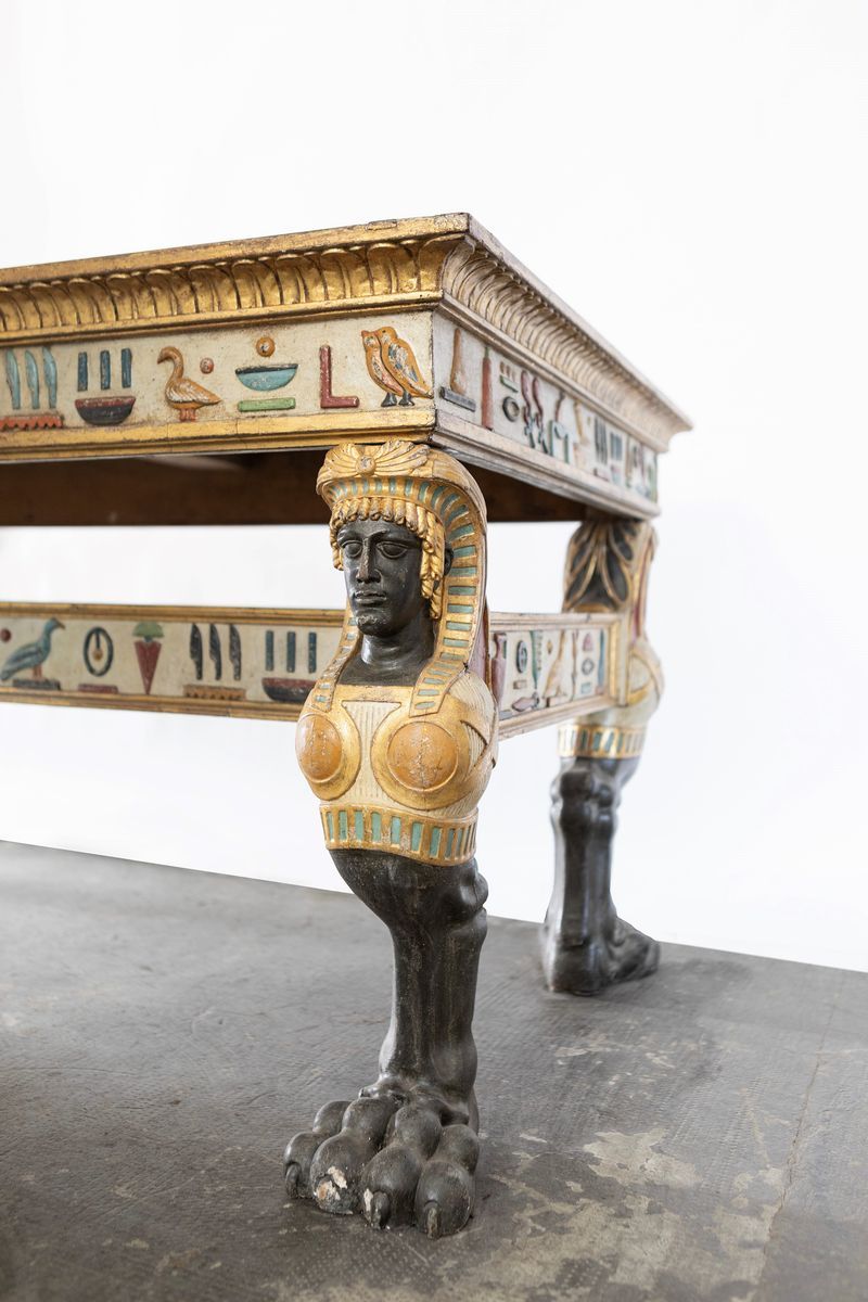 Italian and non-Italian 'designers' then began to design furniture in the Egyptian style. The Magnani-Rocca Foundation in Parma has a large wall table, made in Rome and dated around 1770, with a hieroglyphic decoration similar to that of our table.