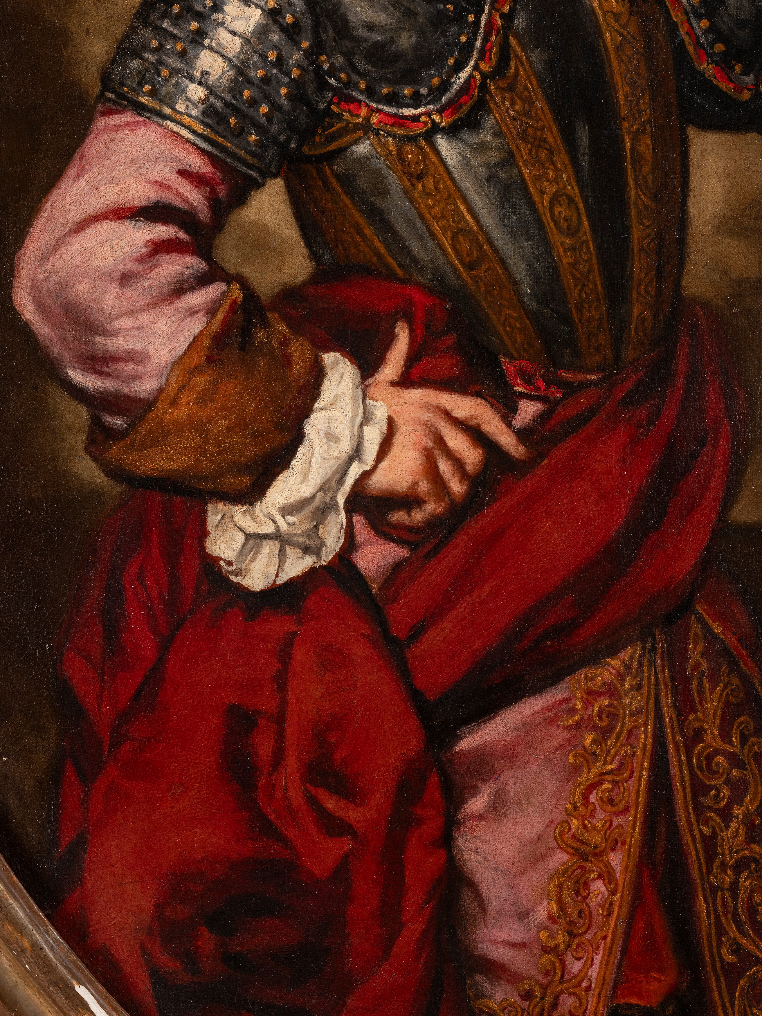However, it is worth remembering that in 1982 Maria Cristina Gozzoli suggested a much earlier dating before the death of Bartolomeo Secco Suardo in 1710 and assumed its possible execution around 1703, on the occasion of his marriage to Emilia Trivelli. According to the scholar, the canvas would thus become a fundamental reference point for the corpus of the Bergamasque painter. This hypothesis - which would therefore place the work chronologically before the portrait of his father of 1711 and close to the first portraits painted by the artist after his return to Bergamo - due to obvious stylistic incompatibilities is not considered valid by either Francesco Frangi (Frangi 2000, p. 39) or Francesco Rossi, who in the catalogue essay of the 2003 exhibition sustains a date between 1720 and 1722. It would therefore not be a portrait from nature but a post mortem portrait that, probably on a particular but unknown family occasion, depicts the effigy in an armour of pure invention but of great scenic impact. The Portrait of Giovanni Secco Suardo with servant, as well as the Portrait of Laura Camilla Secco Suardo in Men's Clothing (private collection), Bartolomeo's daughter, are dated to the same years, pictorial evidence of the painter's relation with the powerful Bergamasque family.