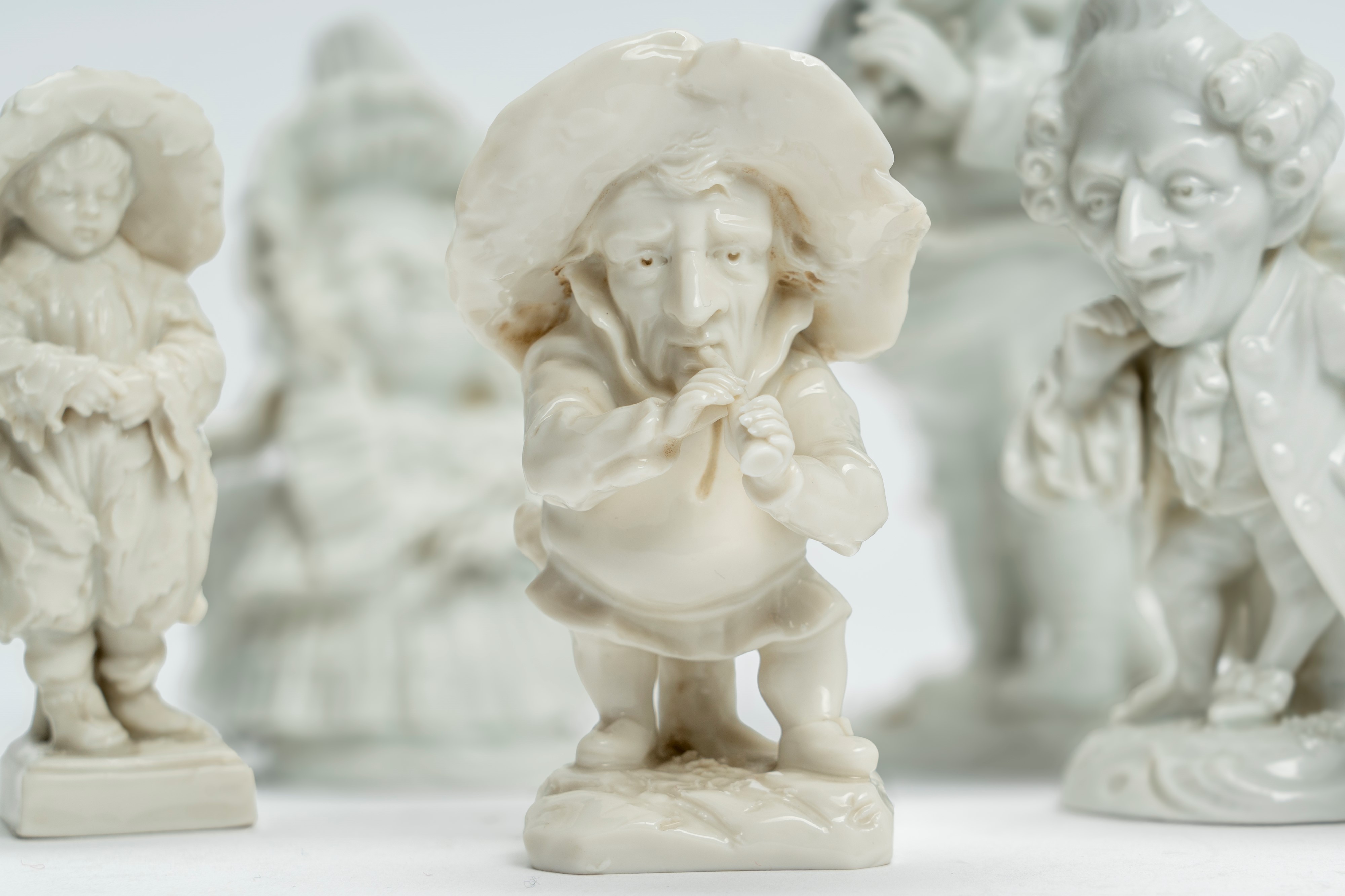 Group of eight white porcelain caramogi of various sizes. Manufactories of the 18th/19th century