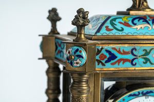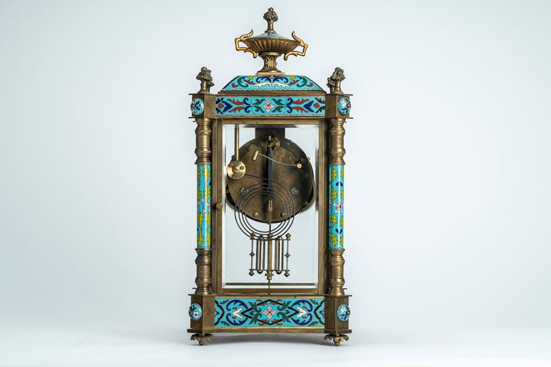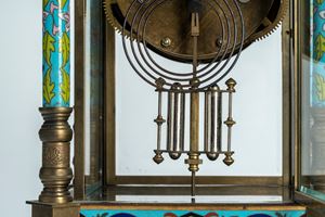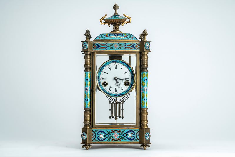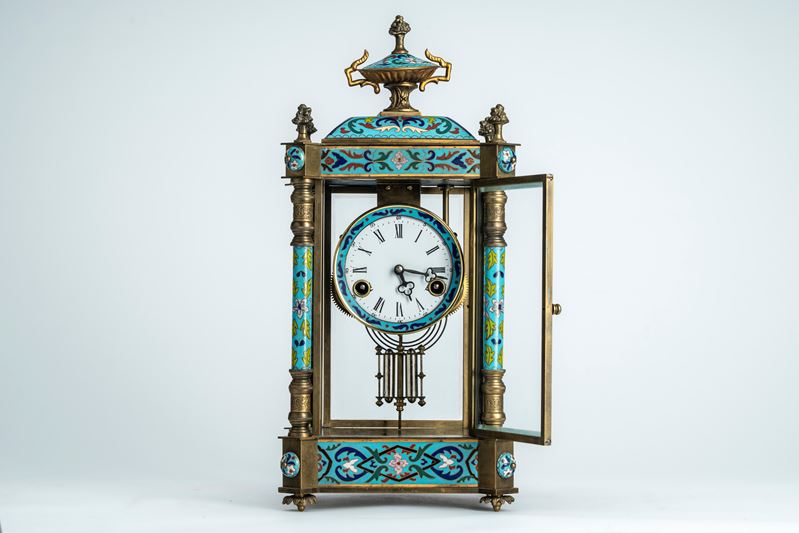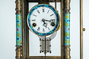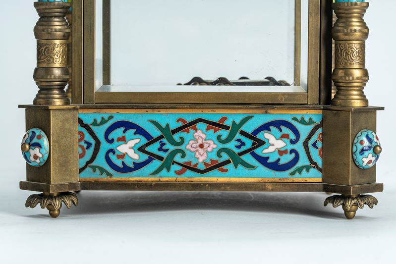 Mantel clock with glass case mounted in bronze decorated with polychrome enamels, France or Austria, late 19th – early 20th century