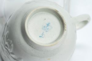Porcelain cup and saucer decorated in polychrome with the “mazzetto” motif and scattered flowers....
