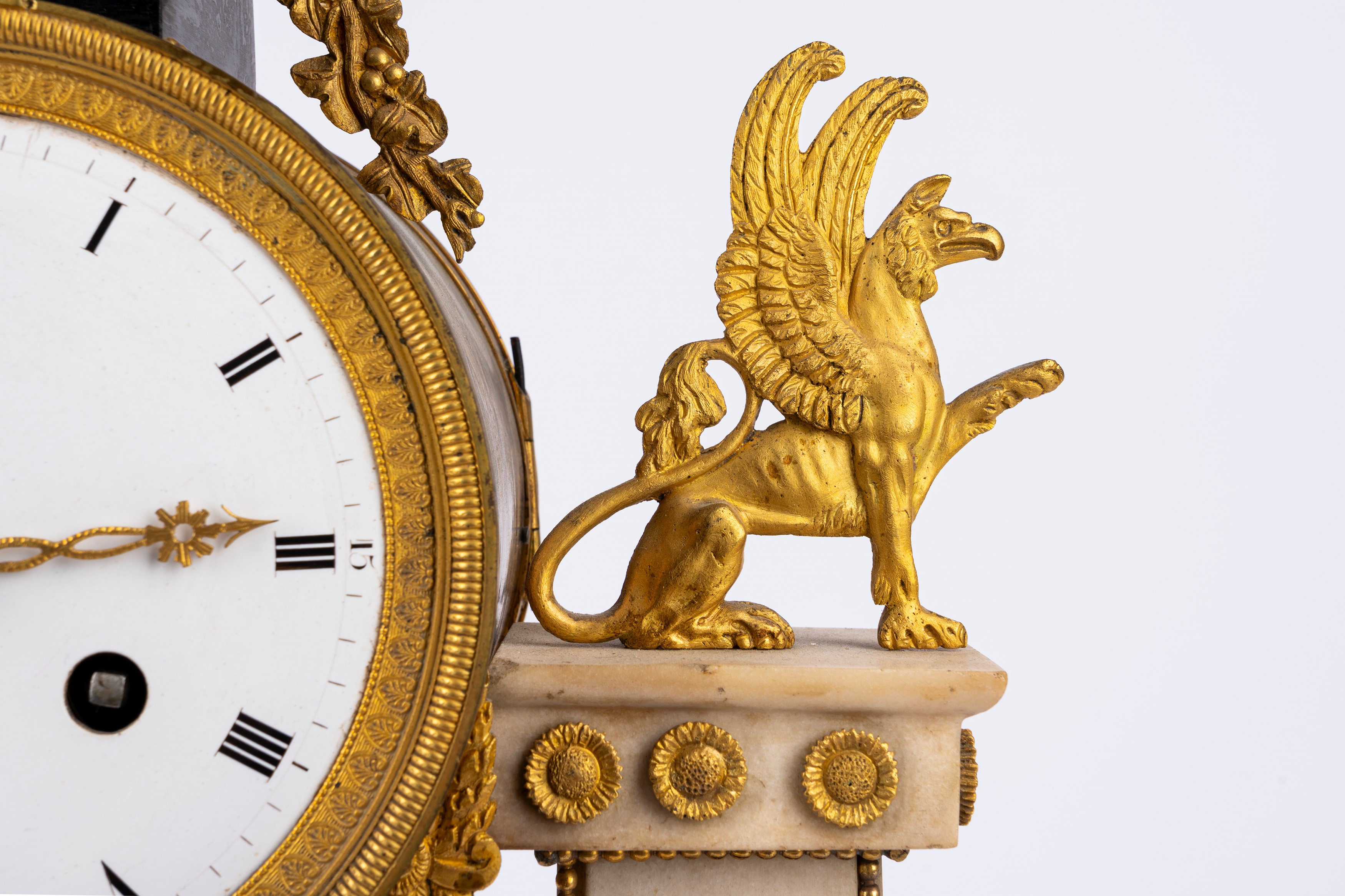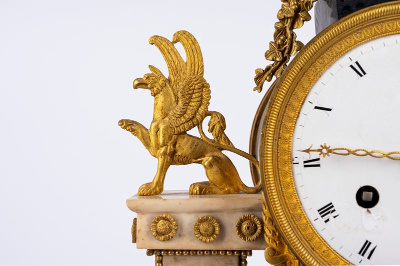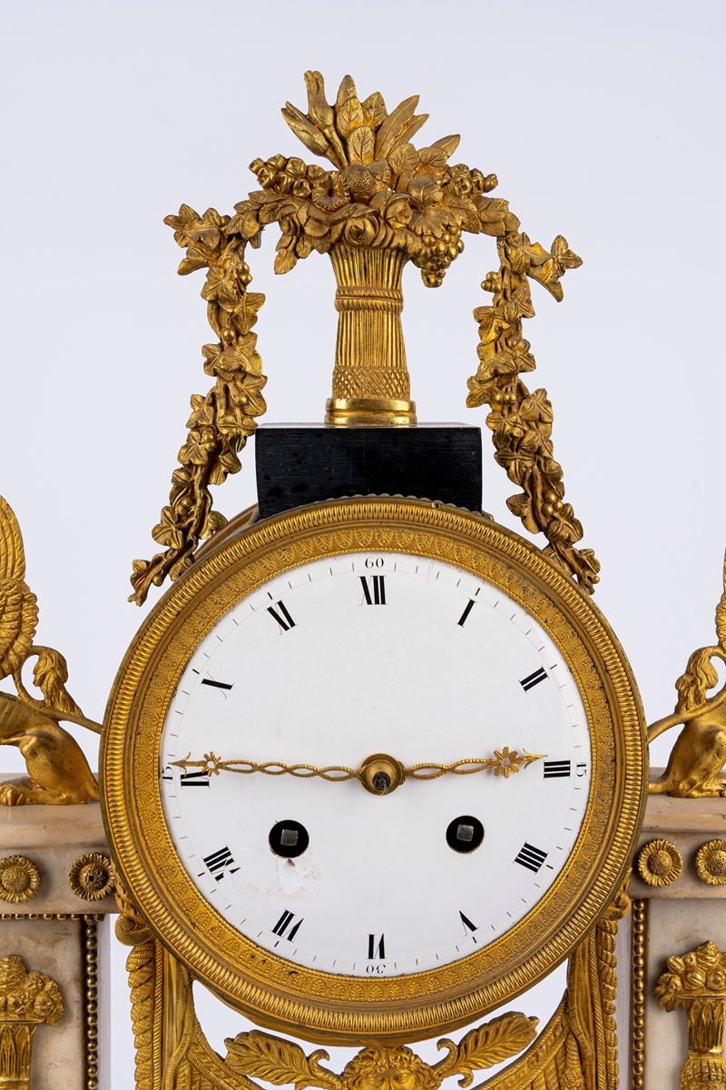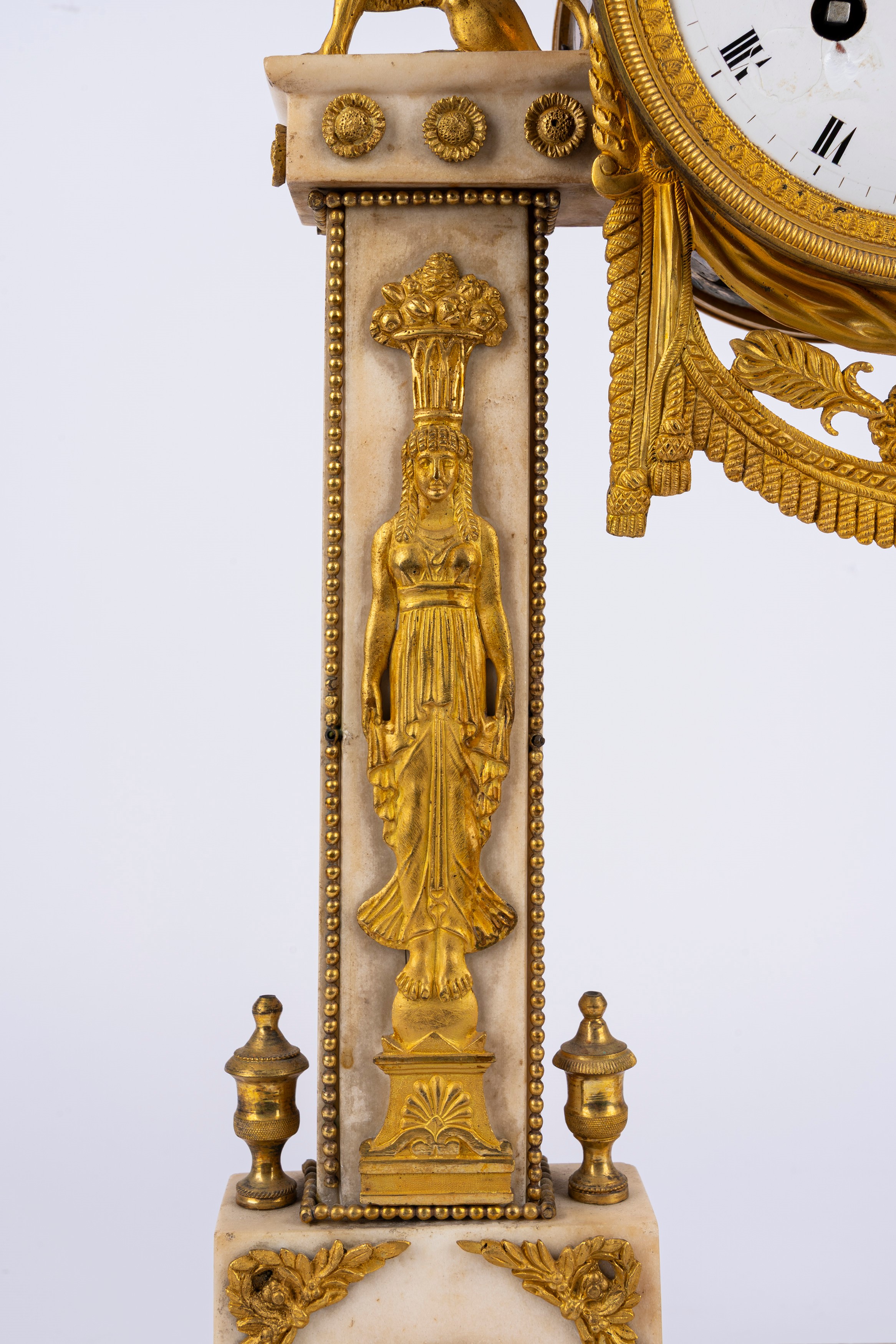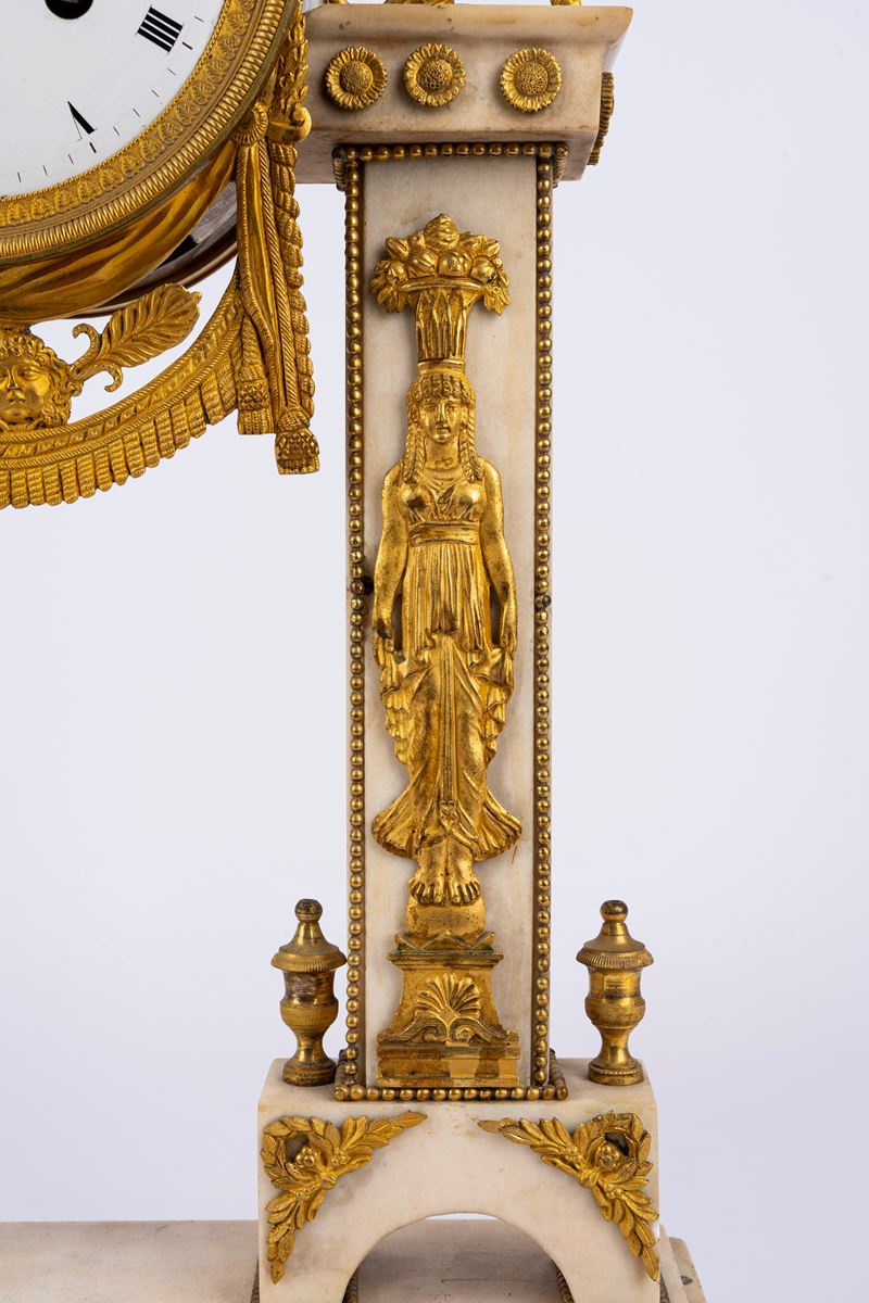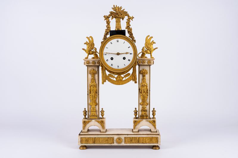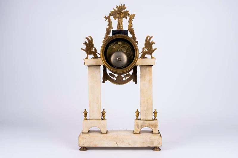 Marble and gilded bronze portico clock. France, late 18th/19th century.