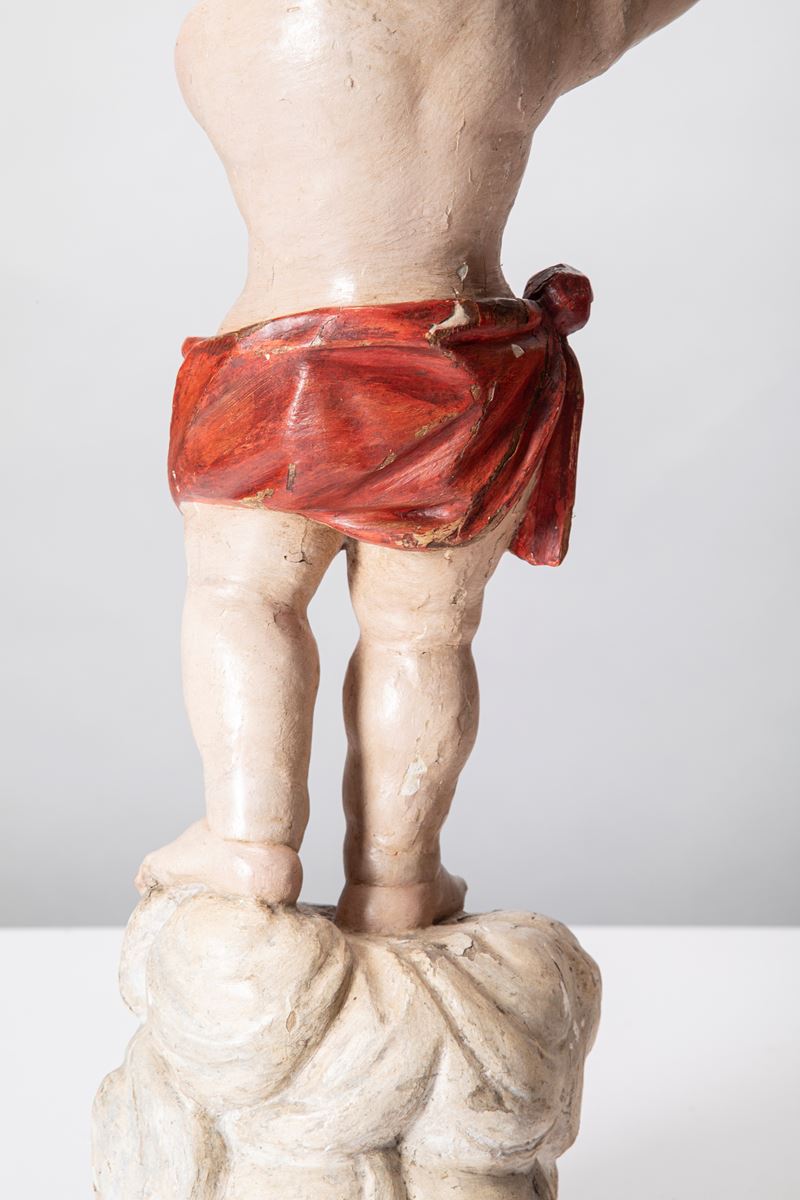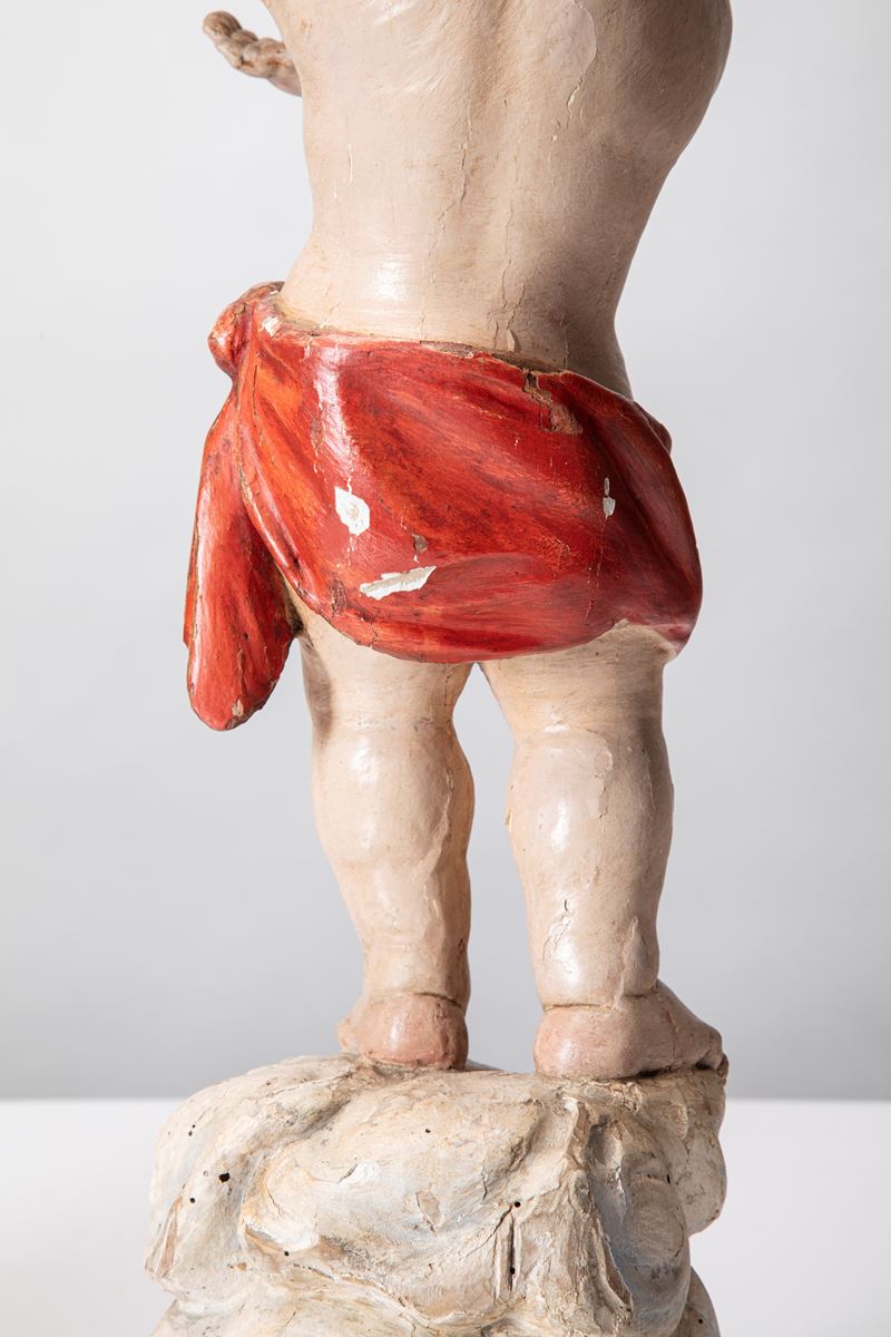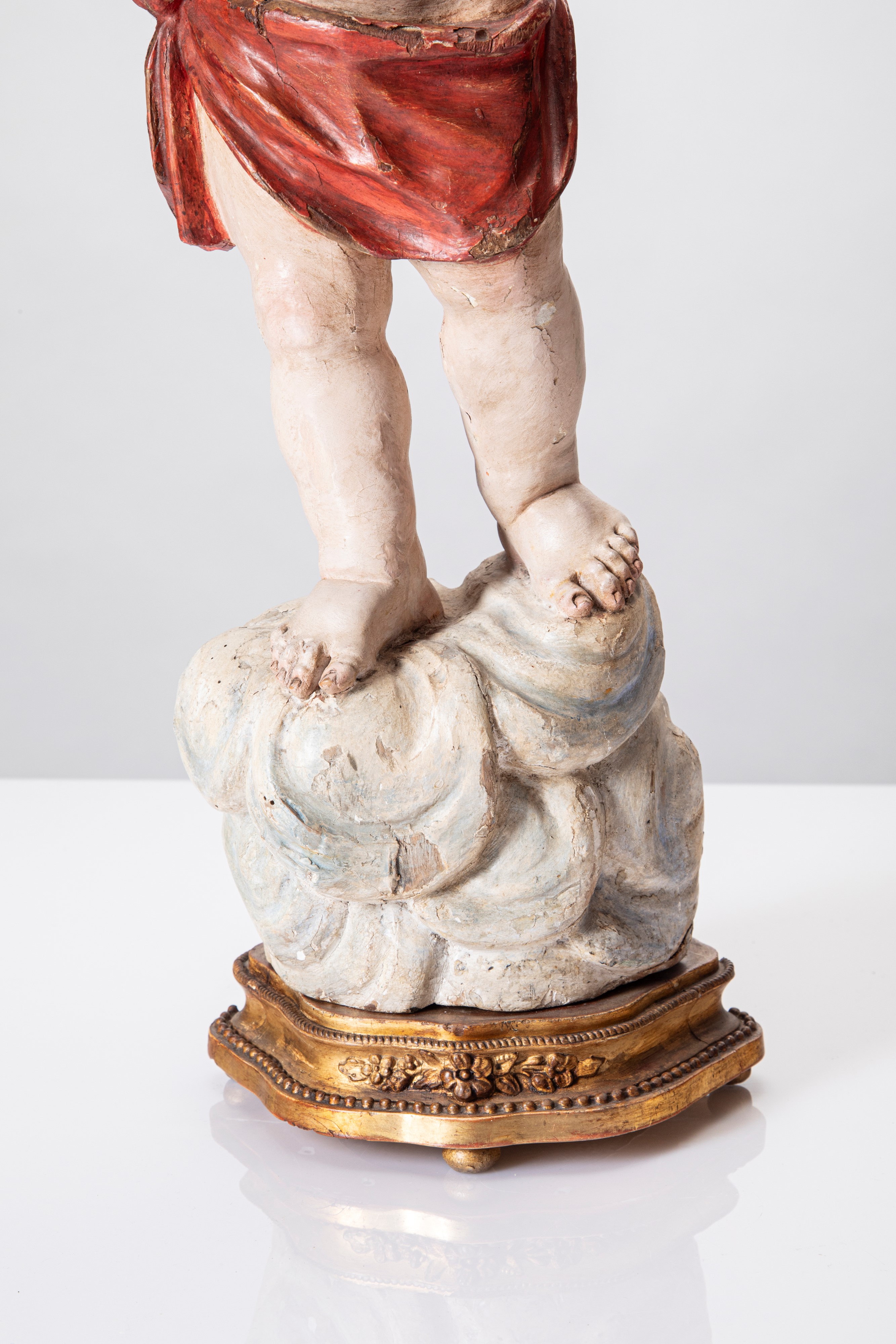 Saint Joseph with Child, polychrome terracotta sculpture with silver-plated metal applications. On...