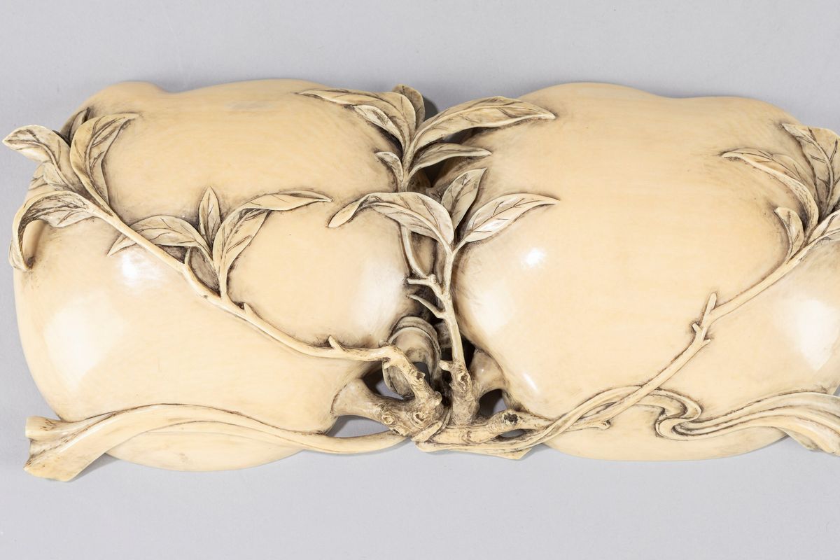 精美的双桃形象牙凋刻牌匾,中国,广州,19 世纪中叶