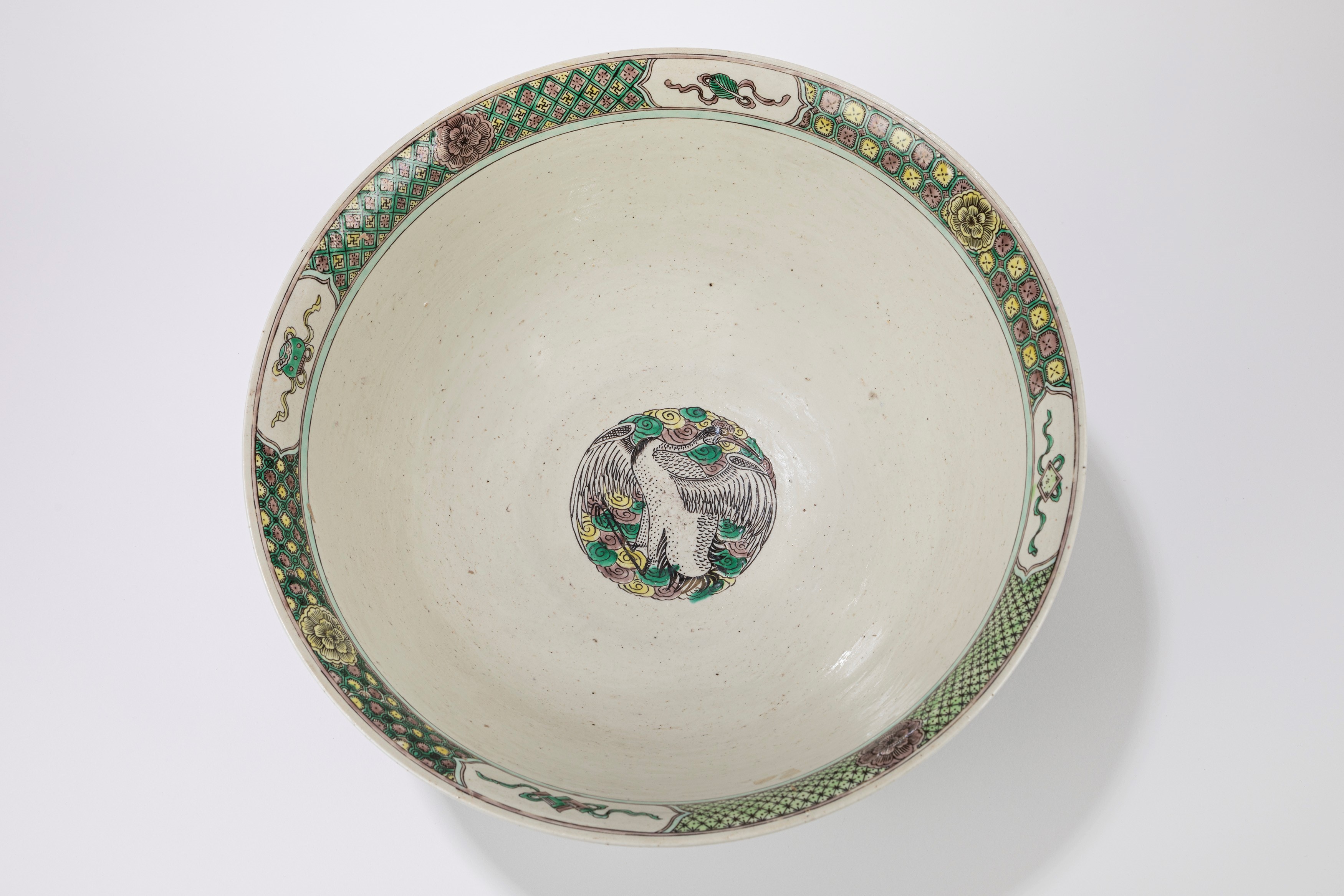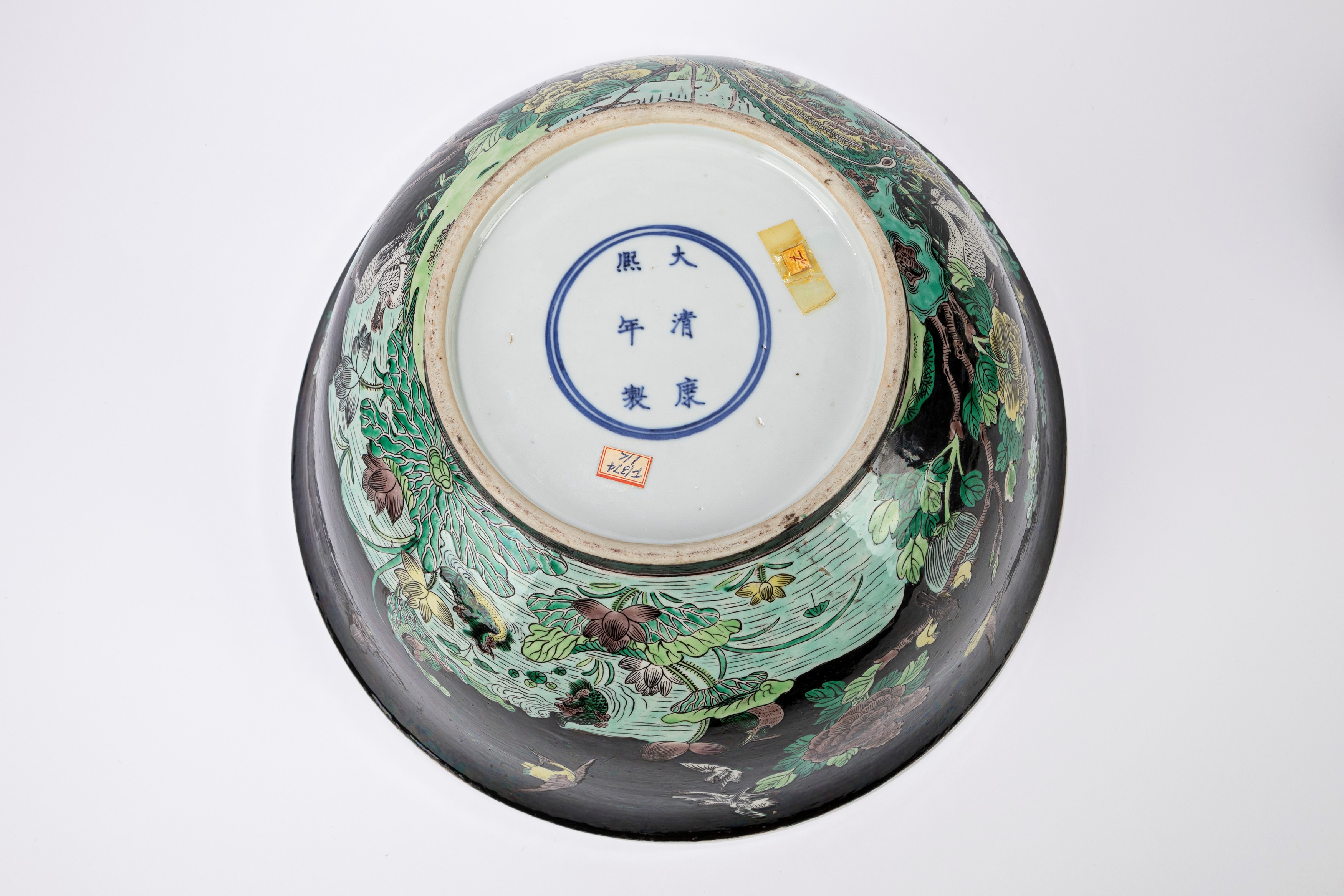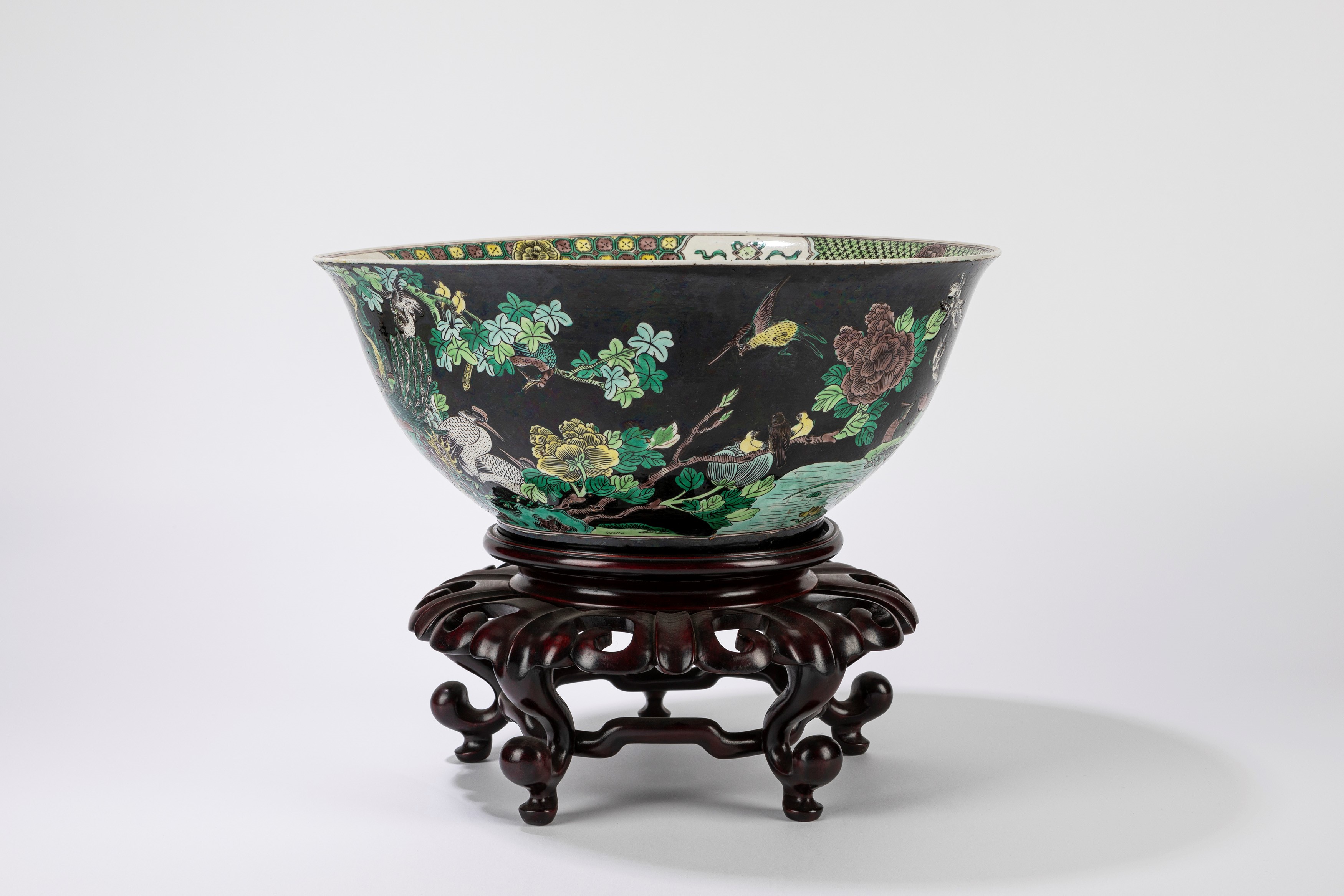 墨地素三彩大型陶瓷碗,中国, 十九世纪
