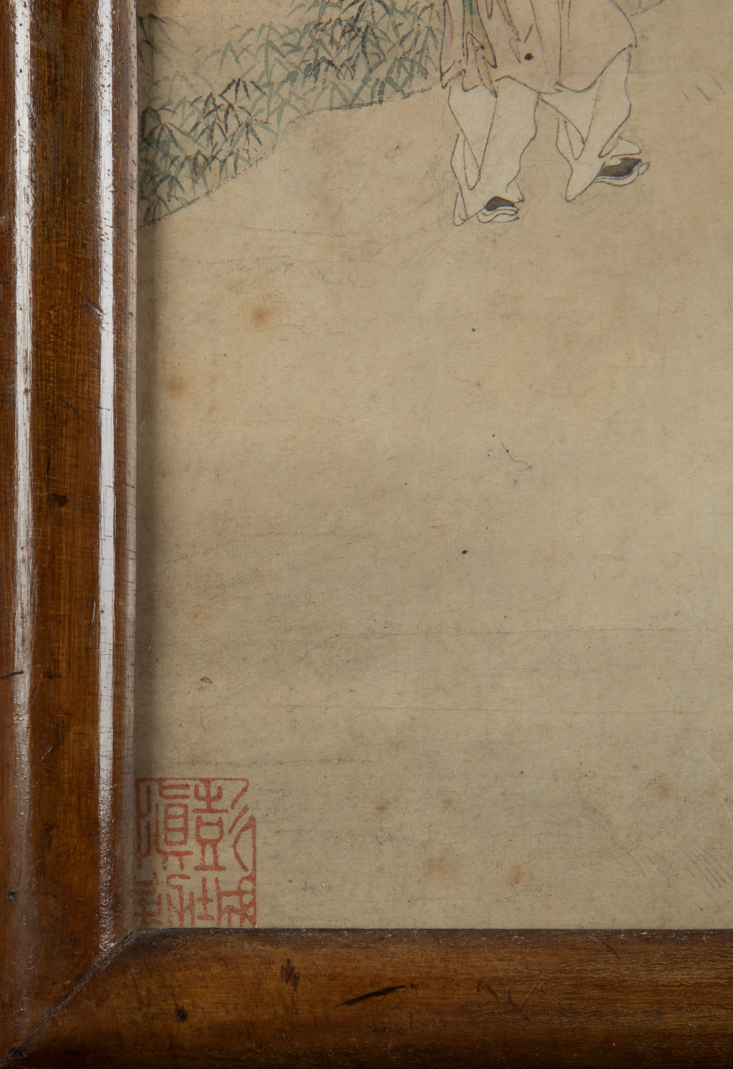 繪有仕女及童子絲綢画,中国,十九世纪