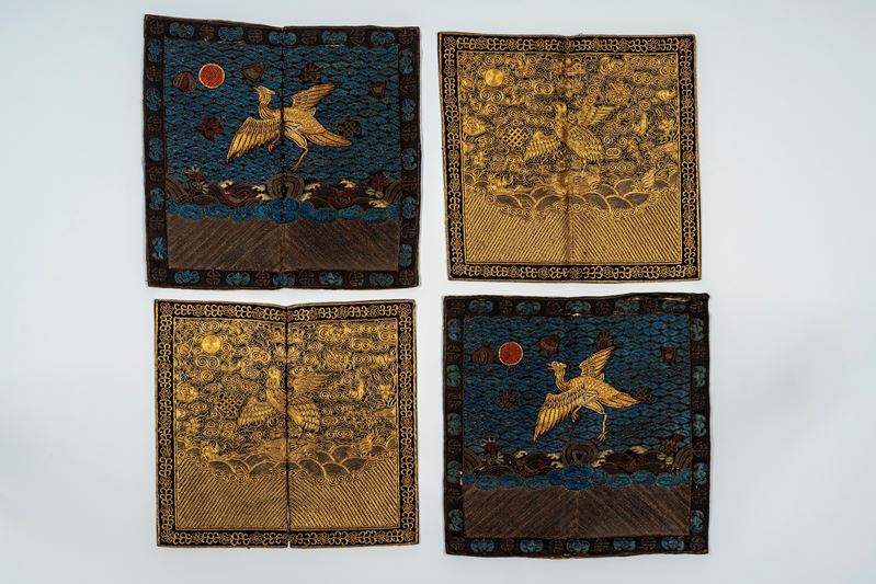 ☼ 清代晚期绣丝补子四件,中国,十九世纪