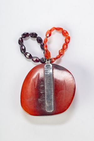 Carved amber pendant with bird on flowering branch, China, early 20th century