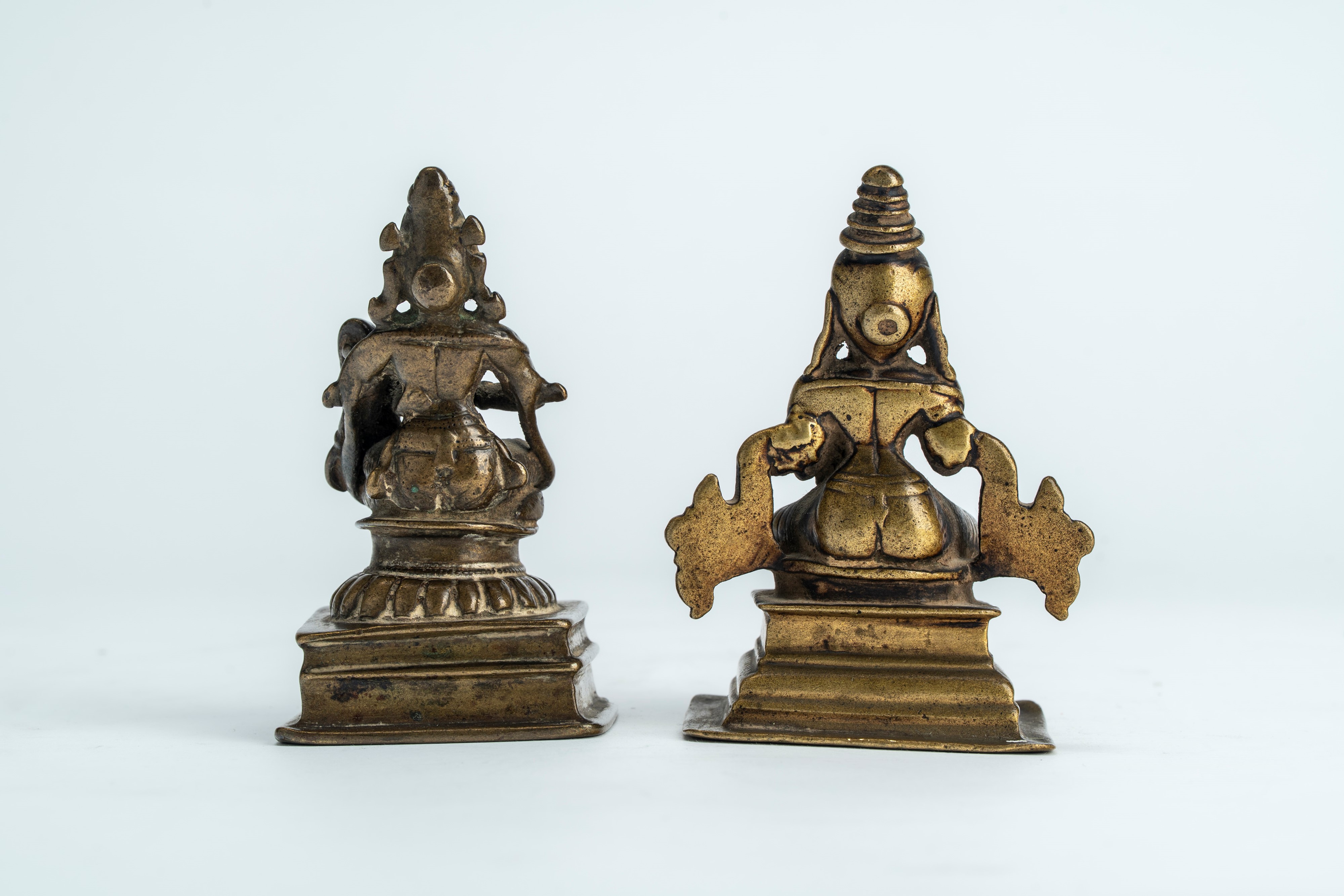 Lot of seven very small brass/bronze figures depicting Indian deities, including three weights, India, 19th century