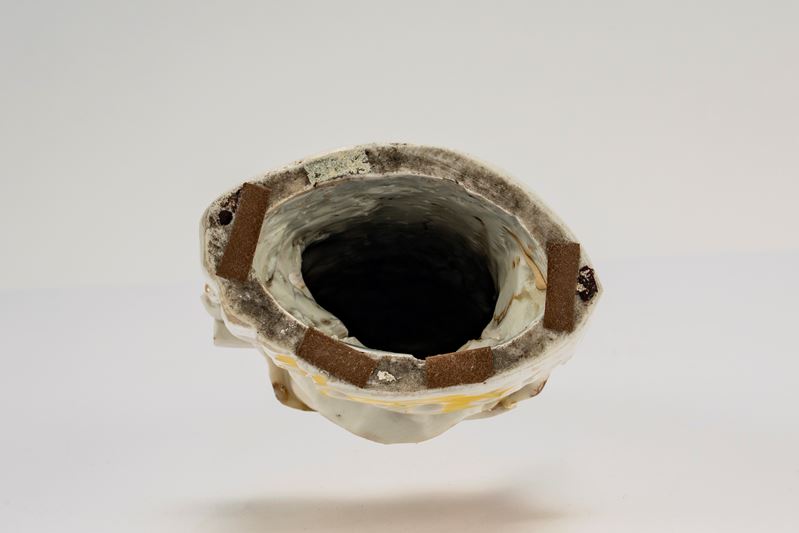Large black stone head of Buddha, in archaic style, China, early 20th century