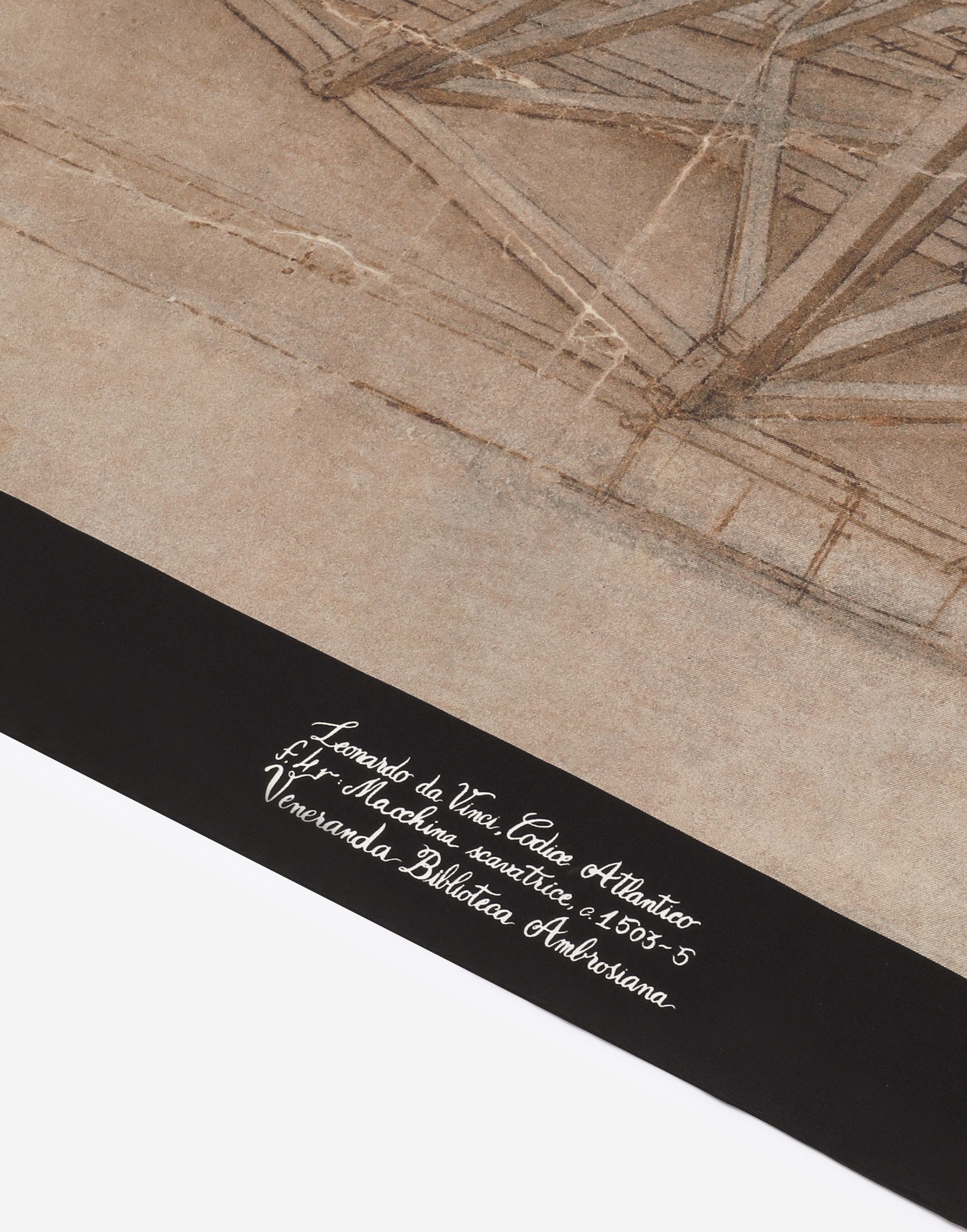 Foulard in silk twill printed with Leonardo Da Vinci’s drawings, refined with hand-rolled edge. Dolce&Gabbana Alta Sartoria, unique piece